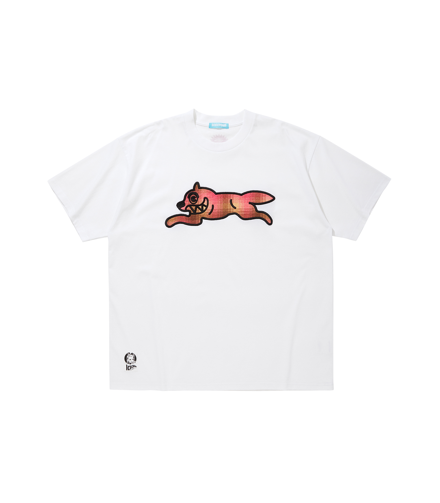 APPLIQUE LOGO RUNNING DOG T-SHIRT - WHITE/PINK CHECK