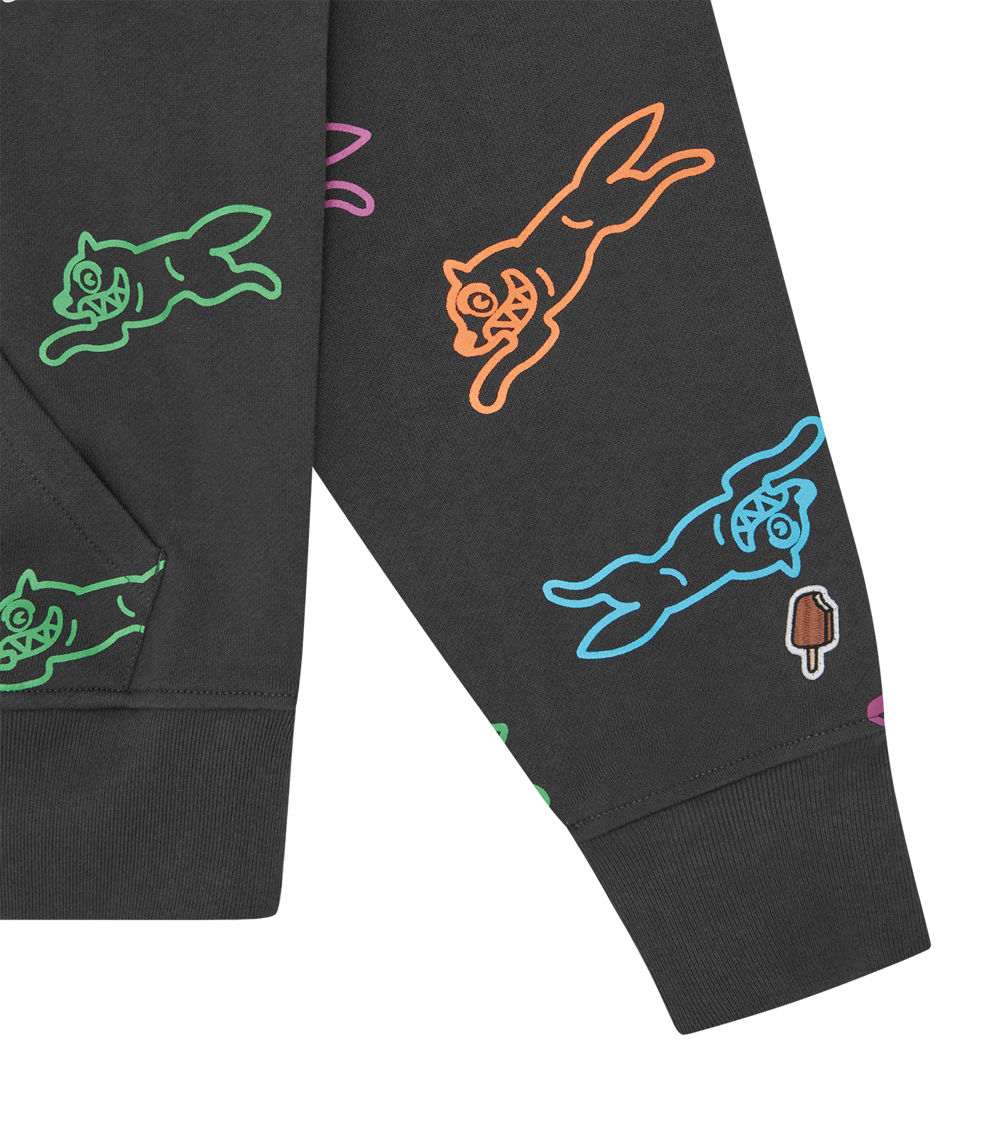 ICECREAM Pre-Fall '25 - The A/O Running Dog Popover Hood features an all-over screen-printed running dog graphic. Matching sweatpants available.