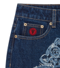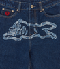 Share: APPLIQUE RUNNING DOG DENIM PANTS - INDIGO