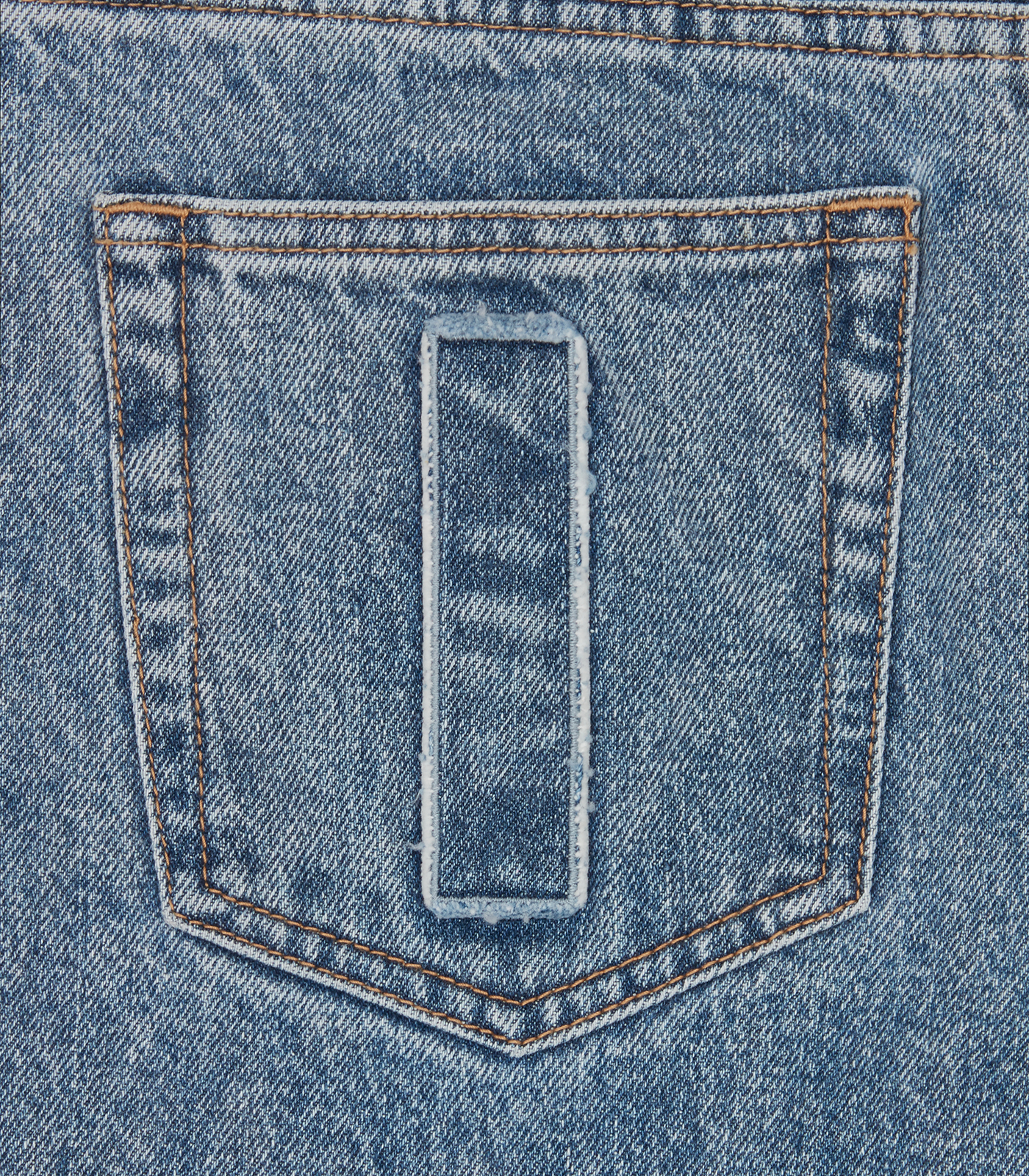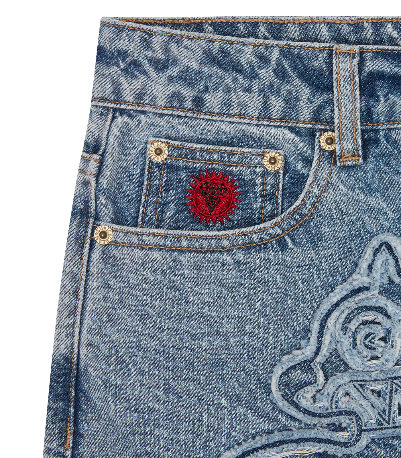 Share: APPLIQUE RUNNING DOG DENIM PANTS - LIGHT WASH BLUE