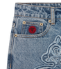 APPLIQUE RUNNING DOG DENIM PANTS - LIGHT WASH BLUE