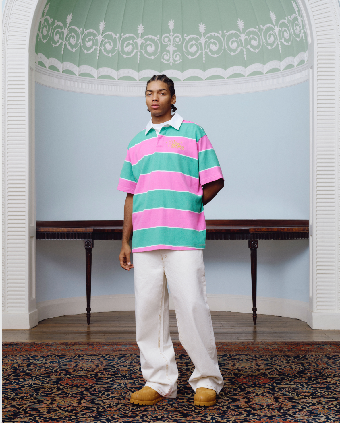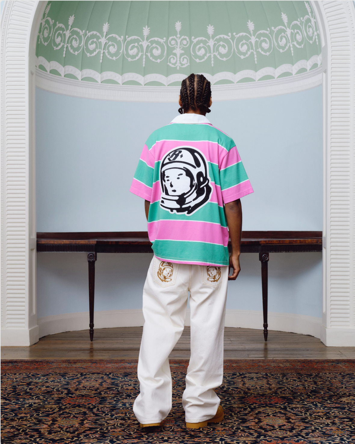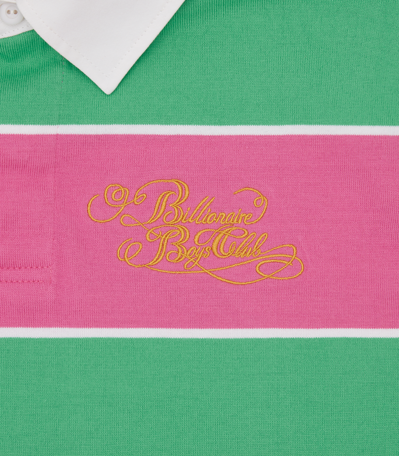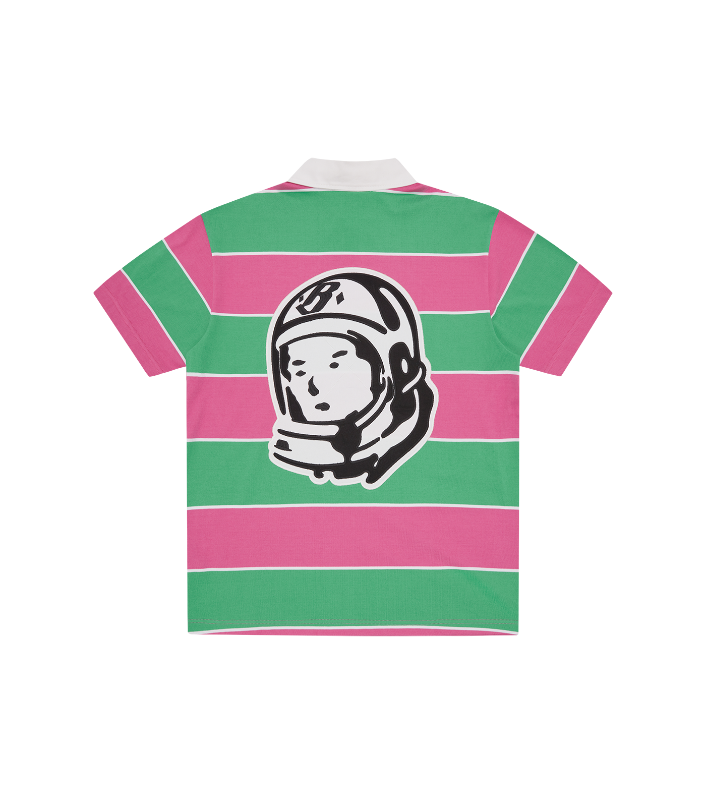 Billionaire Boys Club Pre-Fall '25 - Astro S/S Striped Rugby Top features the embroidered Billionaire Boys Club logo at chest and the Astro appliqué patch on the back. Contrasting collar and stripes on the body.
