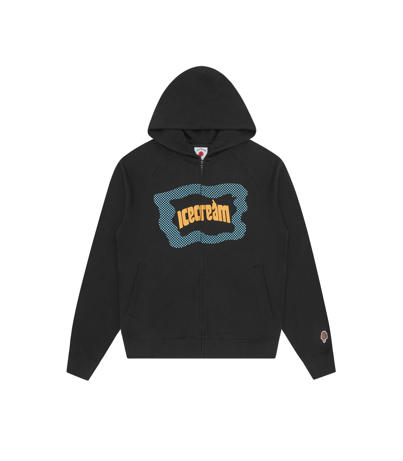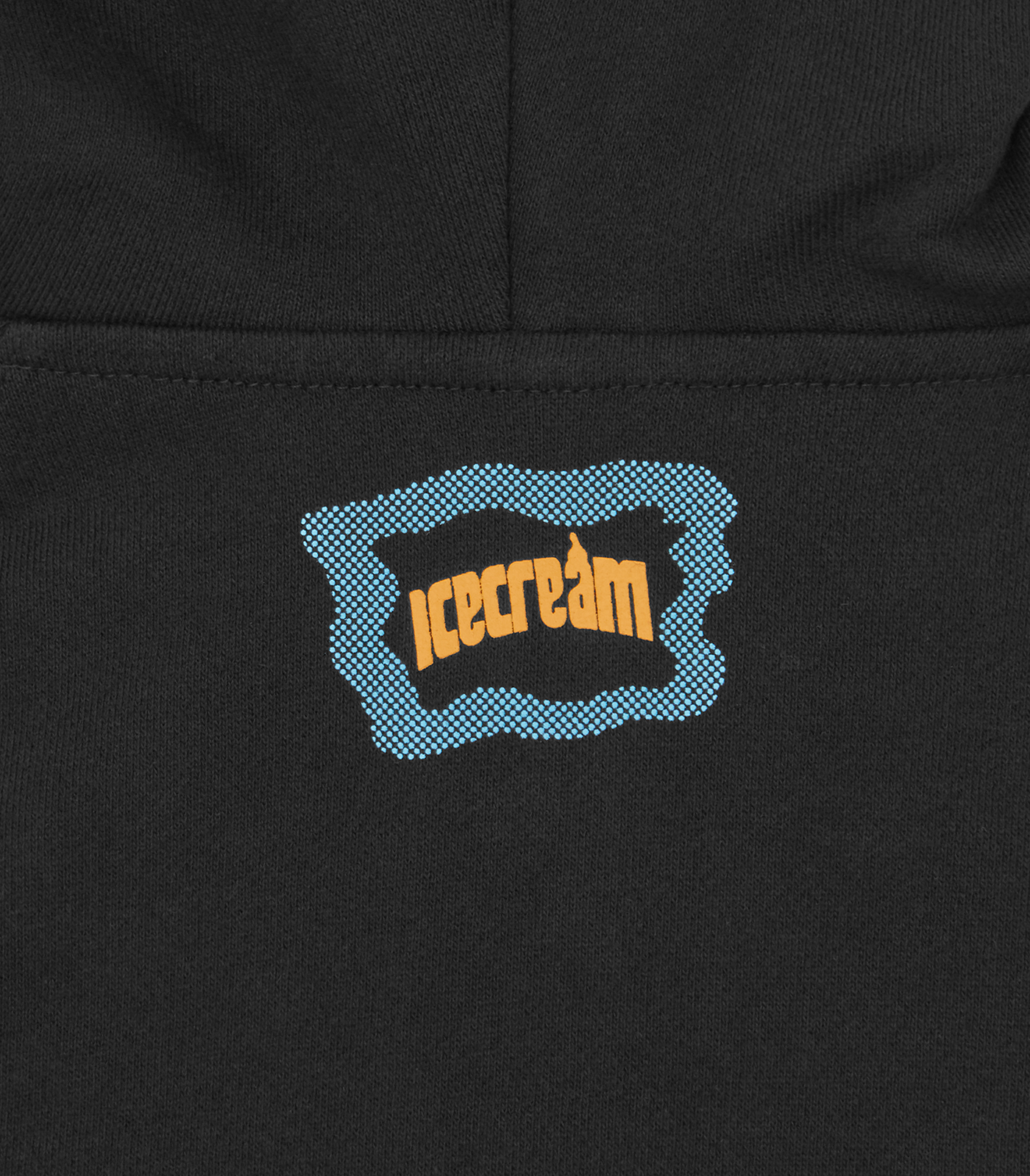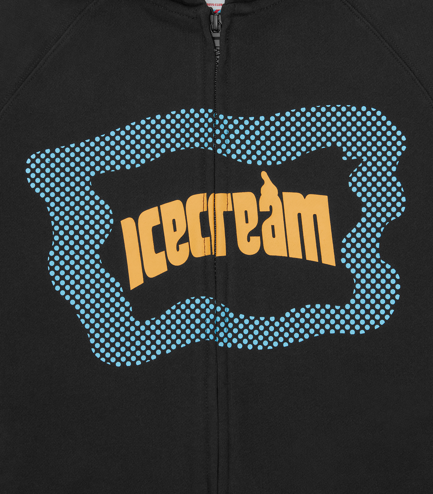 ICECREAM Pre-Fall '25 - Block Logo Zip Through Hood presents the screen printed ICECREAM block logo both on the chest and on the back.