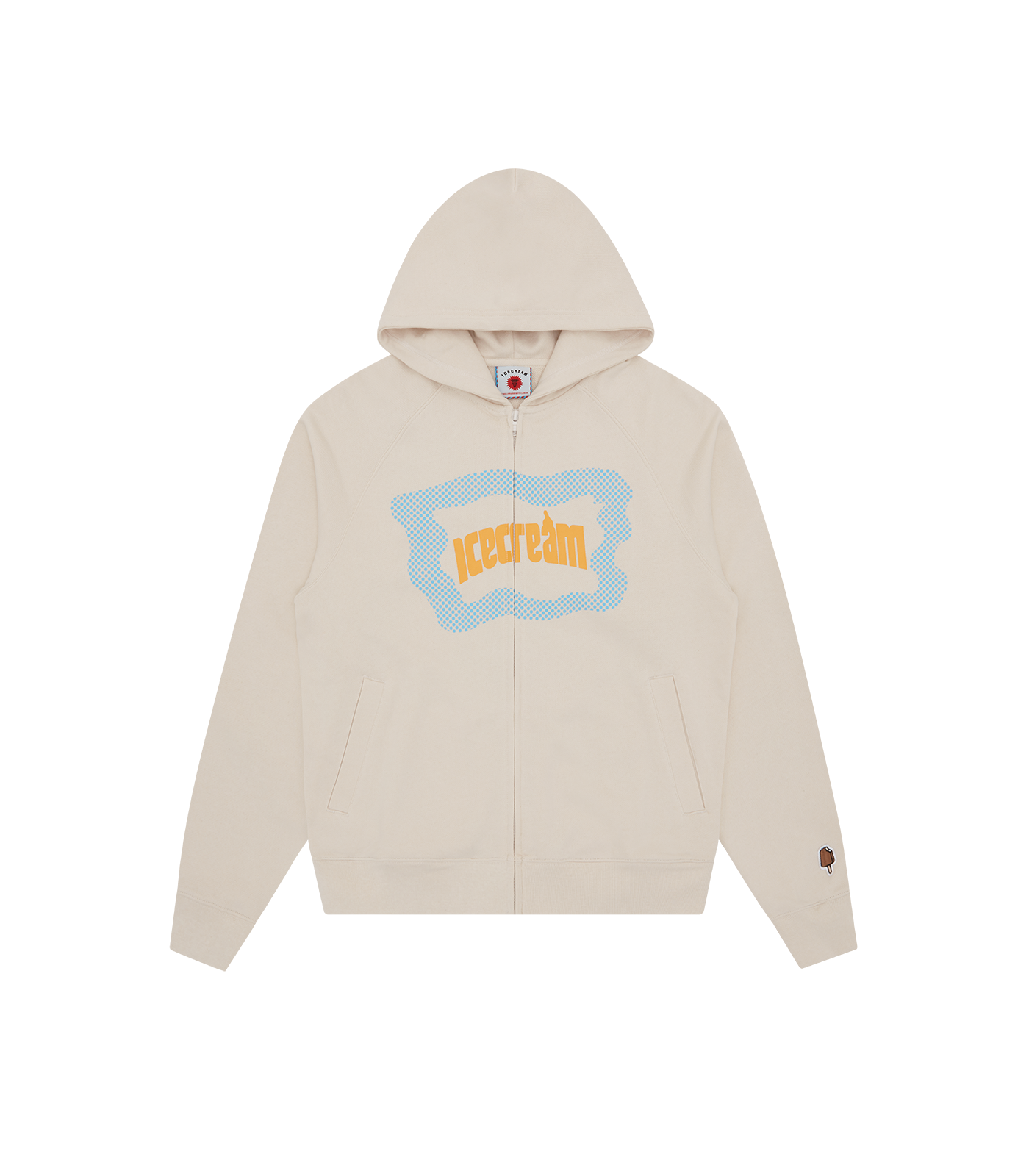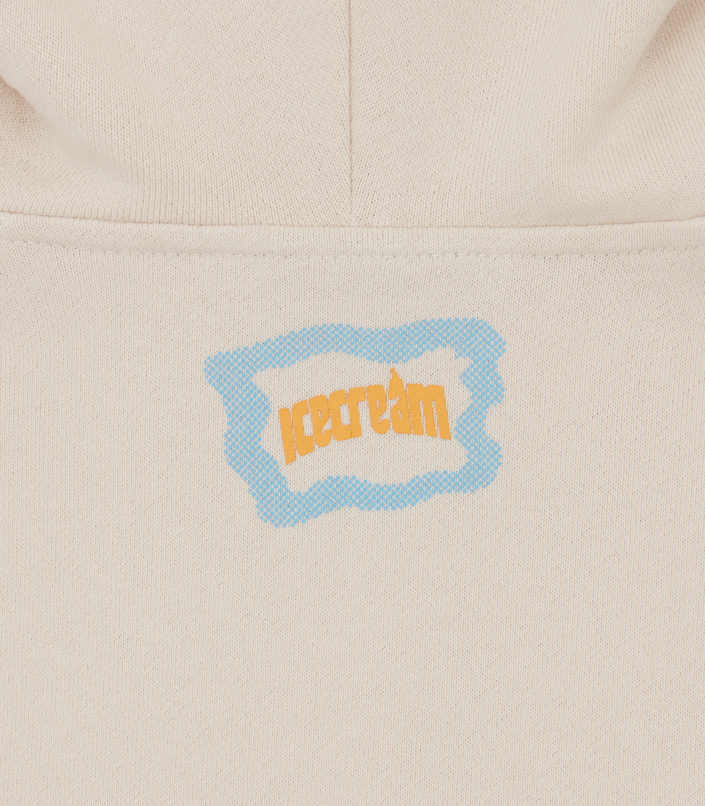 ICECREAM Pre-Fall '25 - Block Logo Zip Through Hood presents the screen printed ICECREAM block logo both on the chest and on the back.