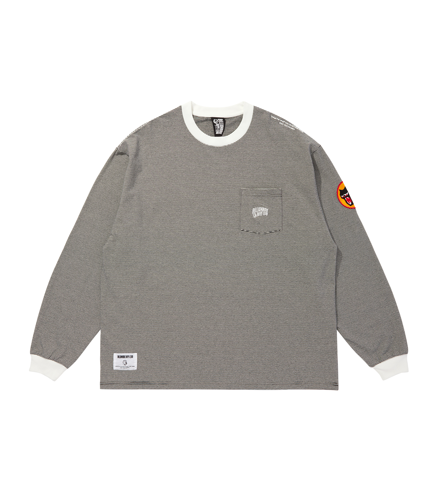 BILLIONAIRE BOYS CLUB JAPAN - The Border Pocket LS T-shirt presents an all-over striped body and features a chest pocket with the embroidered Billionaire Boys Club Arch logo; it is detailed with an embroidered patch on the left sleeve and the embroidered mantra on the left shoulder.