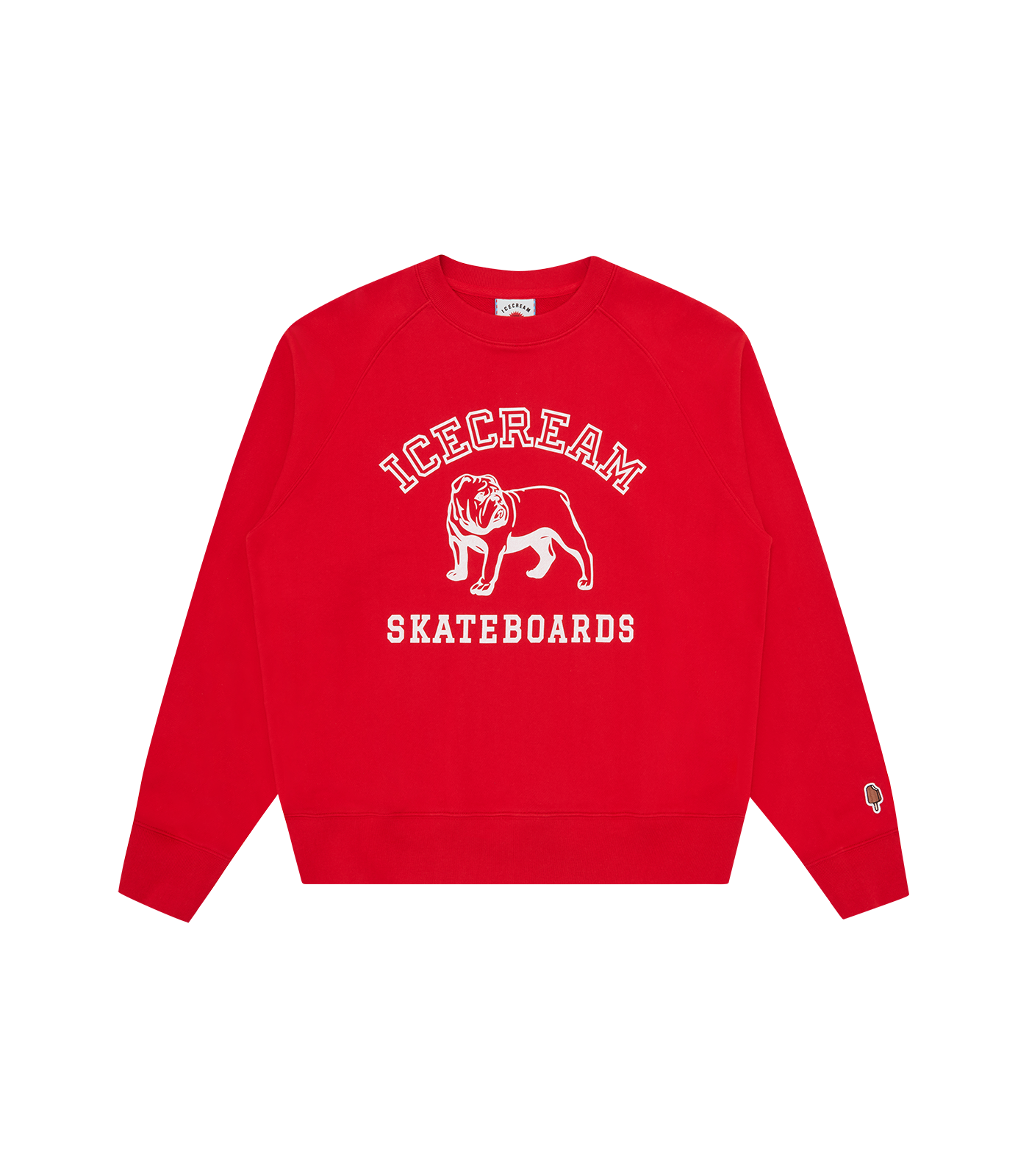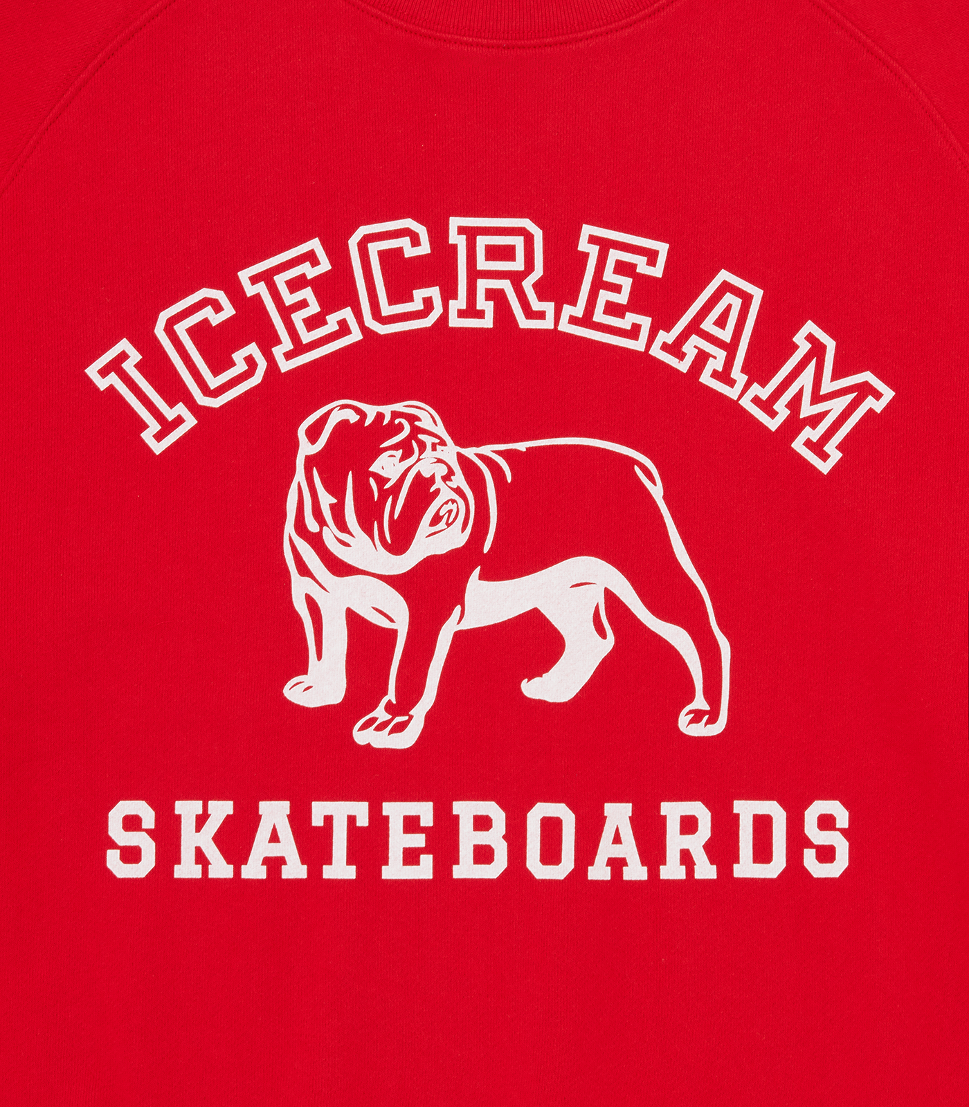 ICECREAM Pre-Fall '25 - The Bulldog Crewneck presents a bulldog graphic at front and the ICECREAM signet at back.