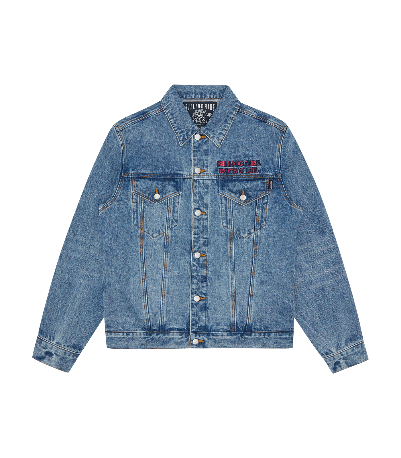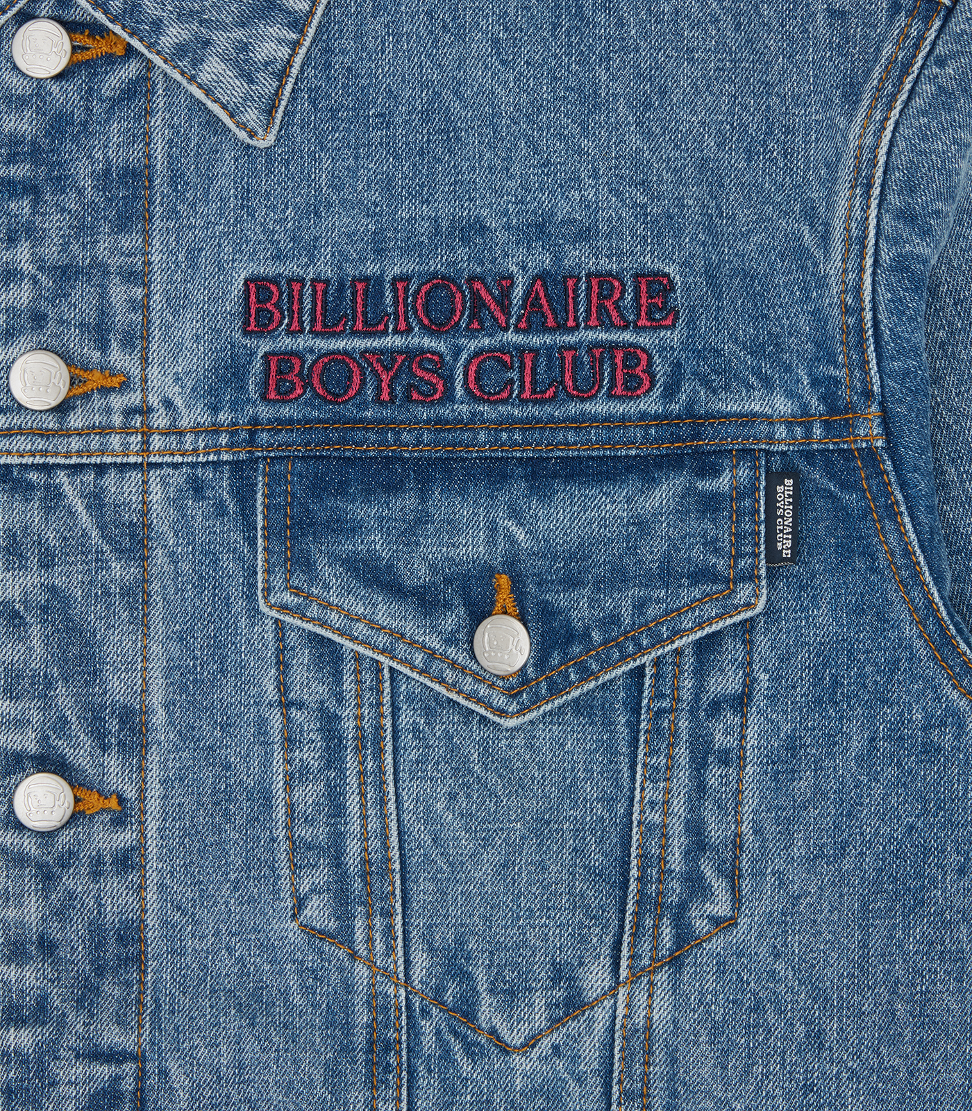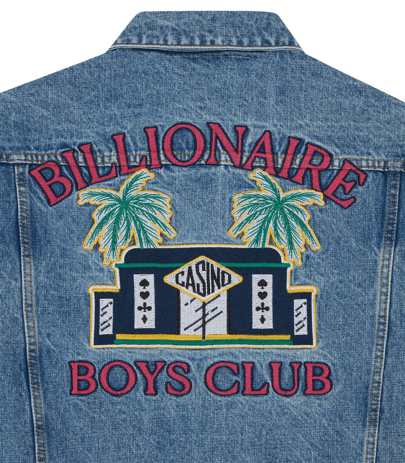 Billionaire Boys Club Pre-Fall '25 - Casino Denim Jacket presenting the embroidered Billionaire Boys Club logo and casino graphics at the back. It is detailed with the Billionaire Boys Club logo at chest pocket. Matching denim pants available.