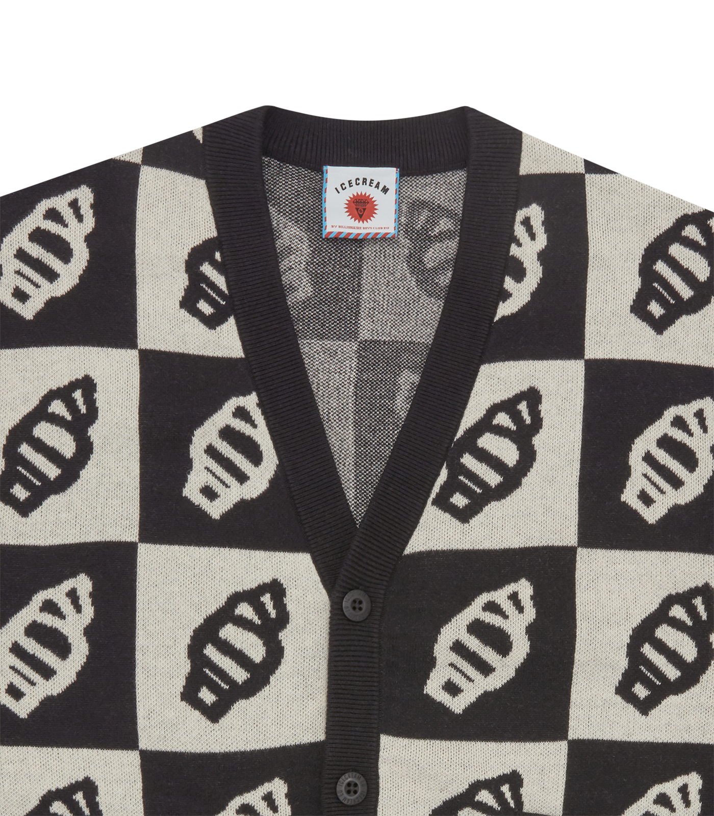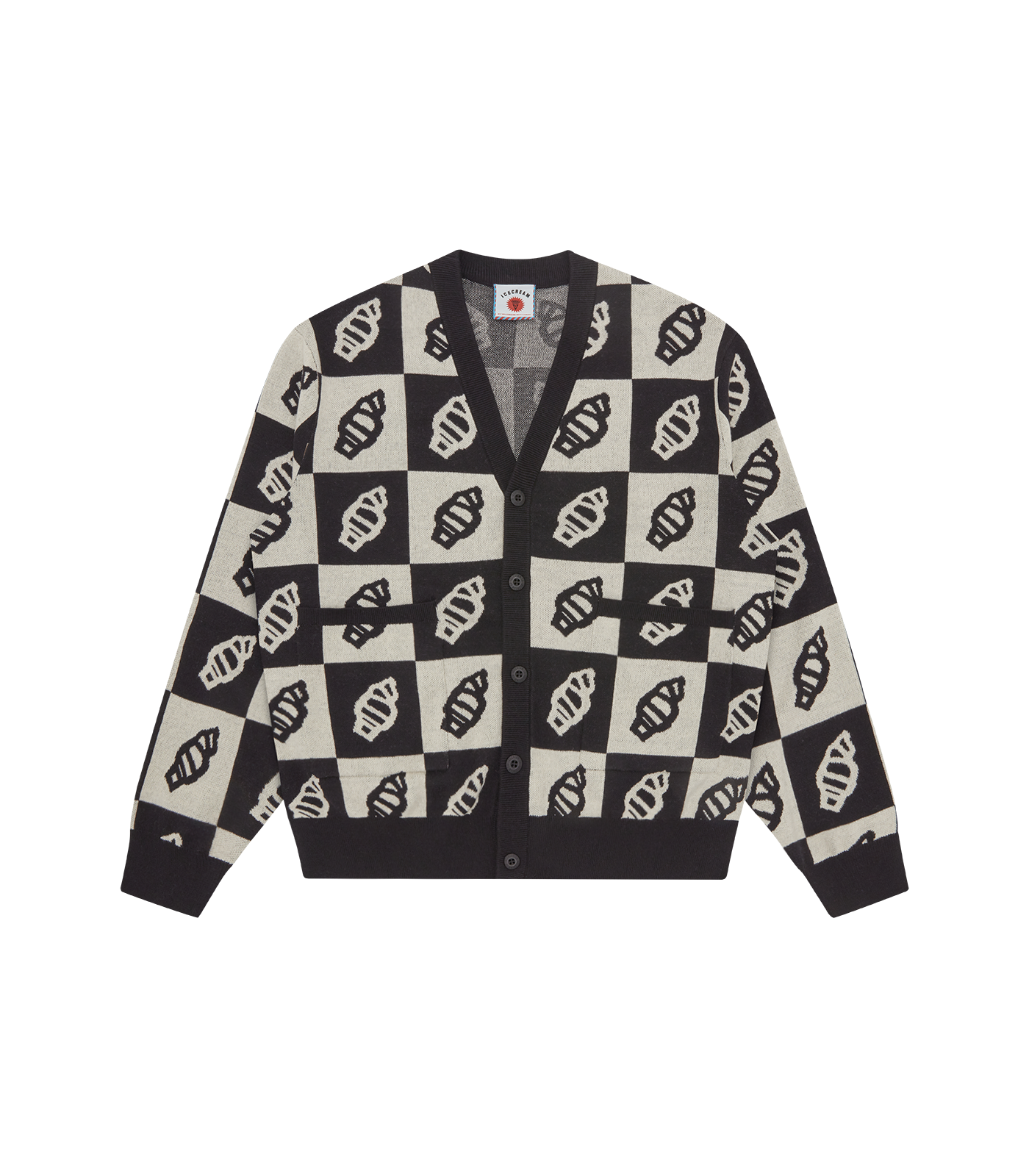 ICECREAM Pre-Fall '25 - This Checkerboard Cardigan presents an all-over branded jacquard pattern.