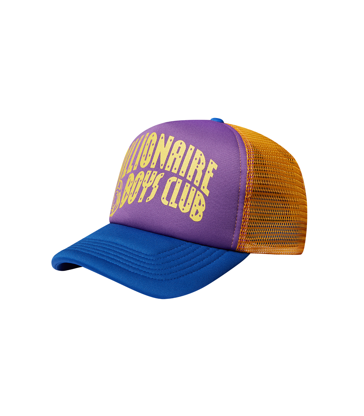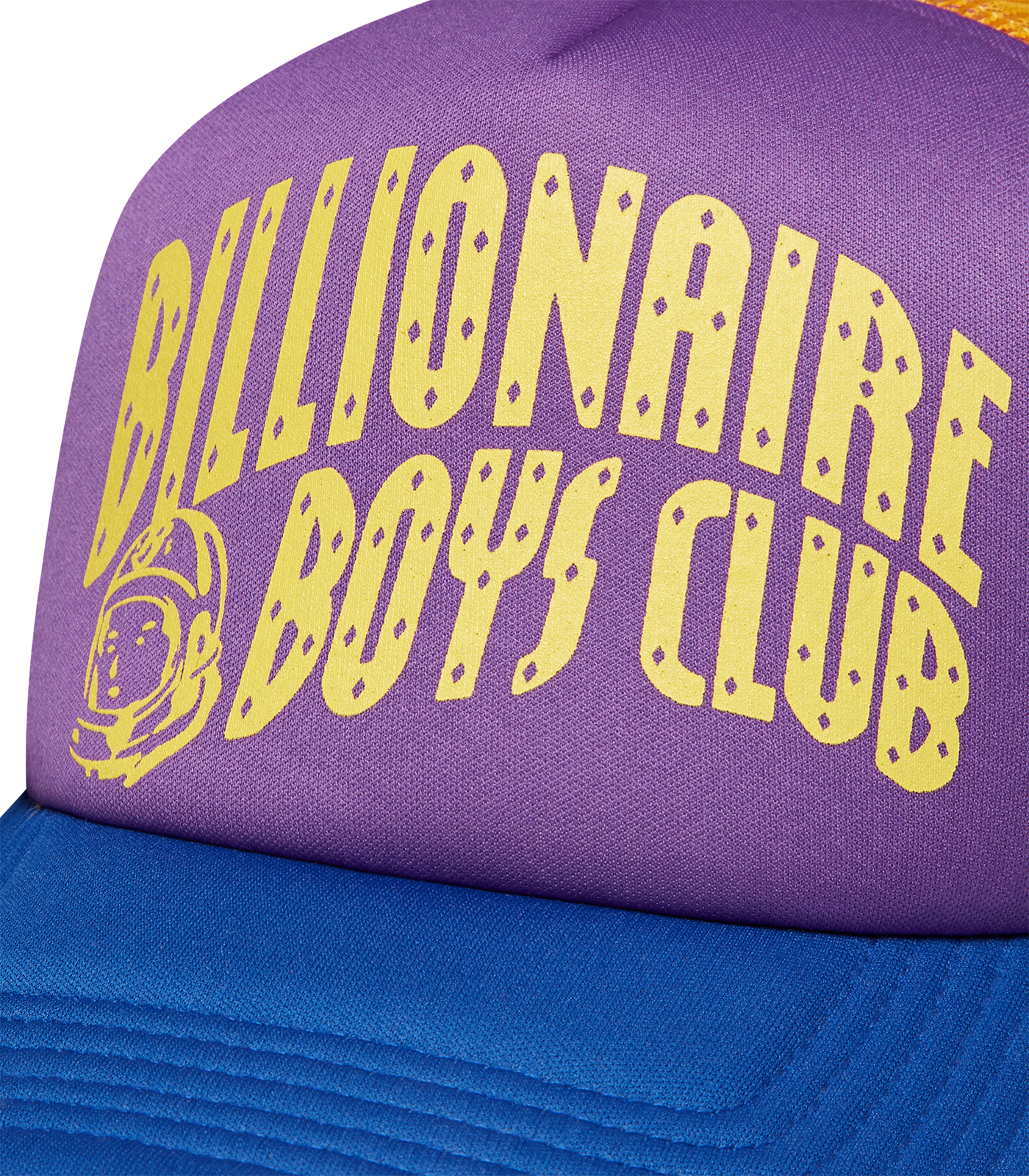 Billionaire Boys Club Fall '25 - The Contrast Arch Logo Mesh Trucker Cap features the Billionaire Boys Club Arch logo and mesh back.