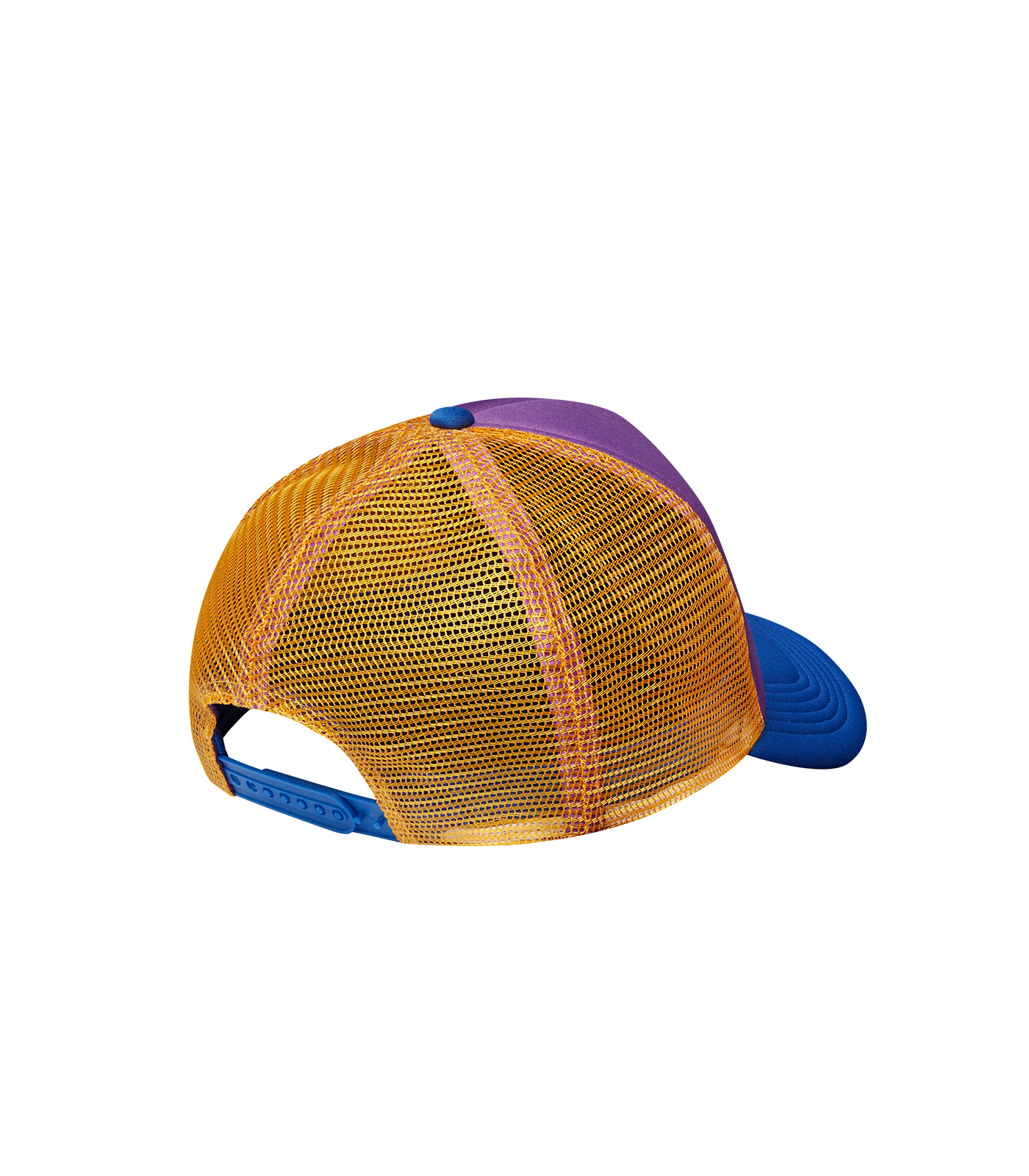 CONTRAST ARCH LOGO MESH TRUCKER CAP - PURPLE/BLUE