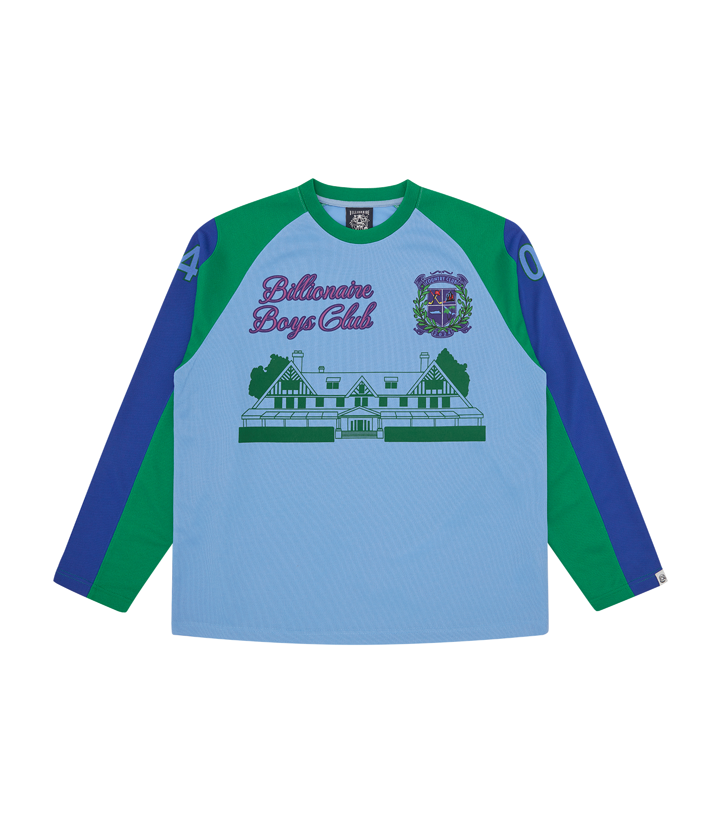 Billionaire Boys Club Pre-Fall '25 - This Country Club Hockey Top presents the Billionaire Boys Club Country Club graphics and logos on the front and back. The style is completed with contrasting sleeves panels and graphics on the sleeves.