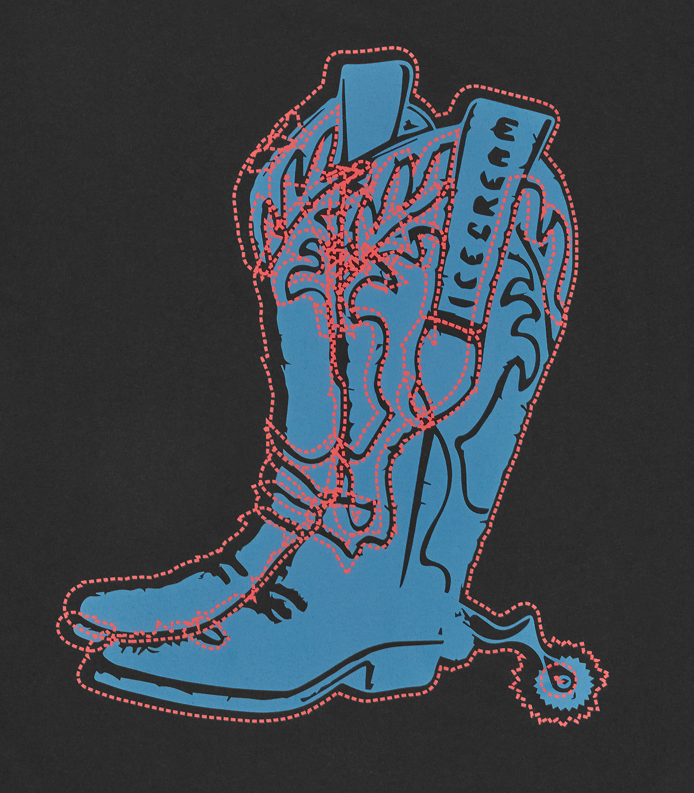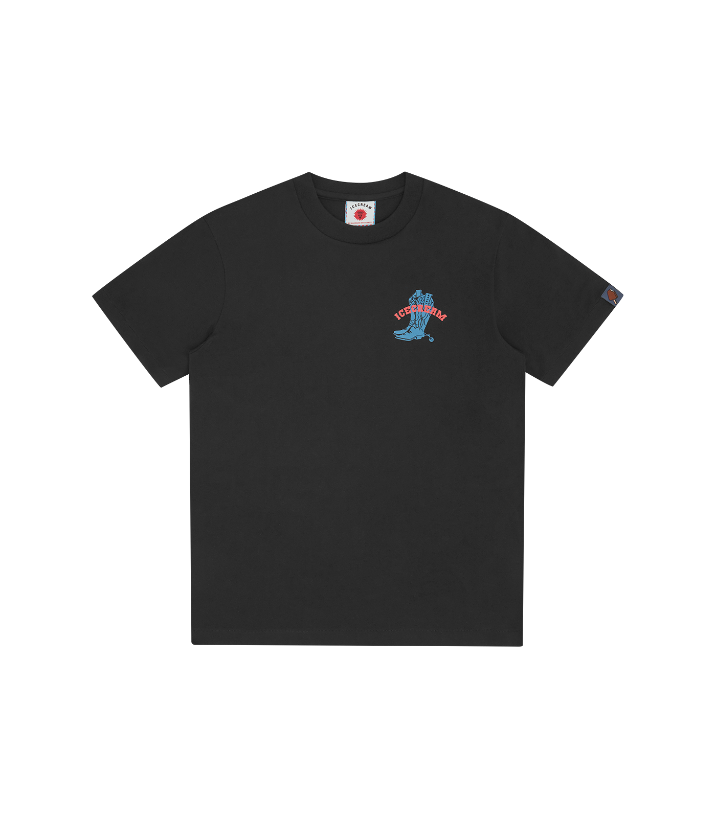 ICECREAM Spring '25 - The Cowboy Boot T-shirt presents the ICECREAM cowboy boot small graphic on the chest and repeated all over the back side.