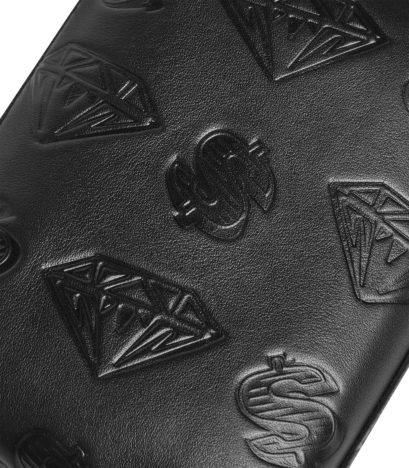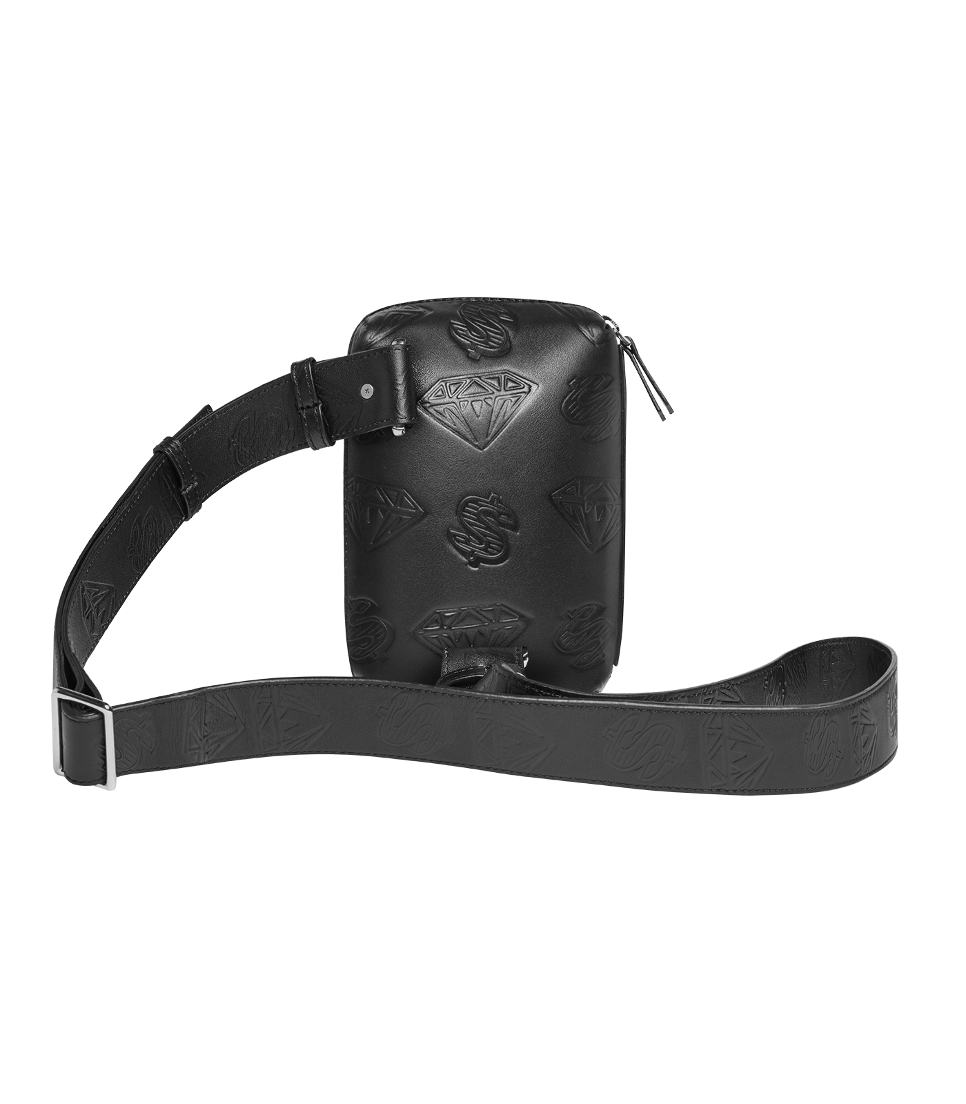 Billionaire Boys Club Pre-Fall '25 - 100% calfskin leather construction side bag presenting the Billionaire Boys Club Diamonds & Dollars debossed graphic across the body.