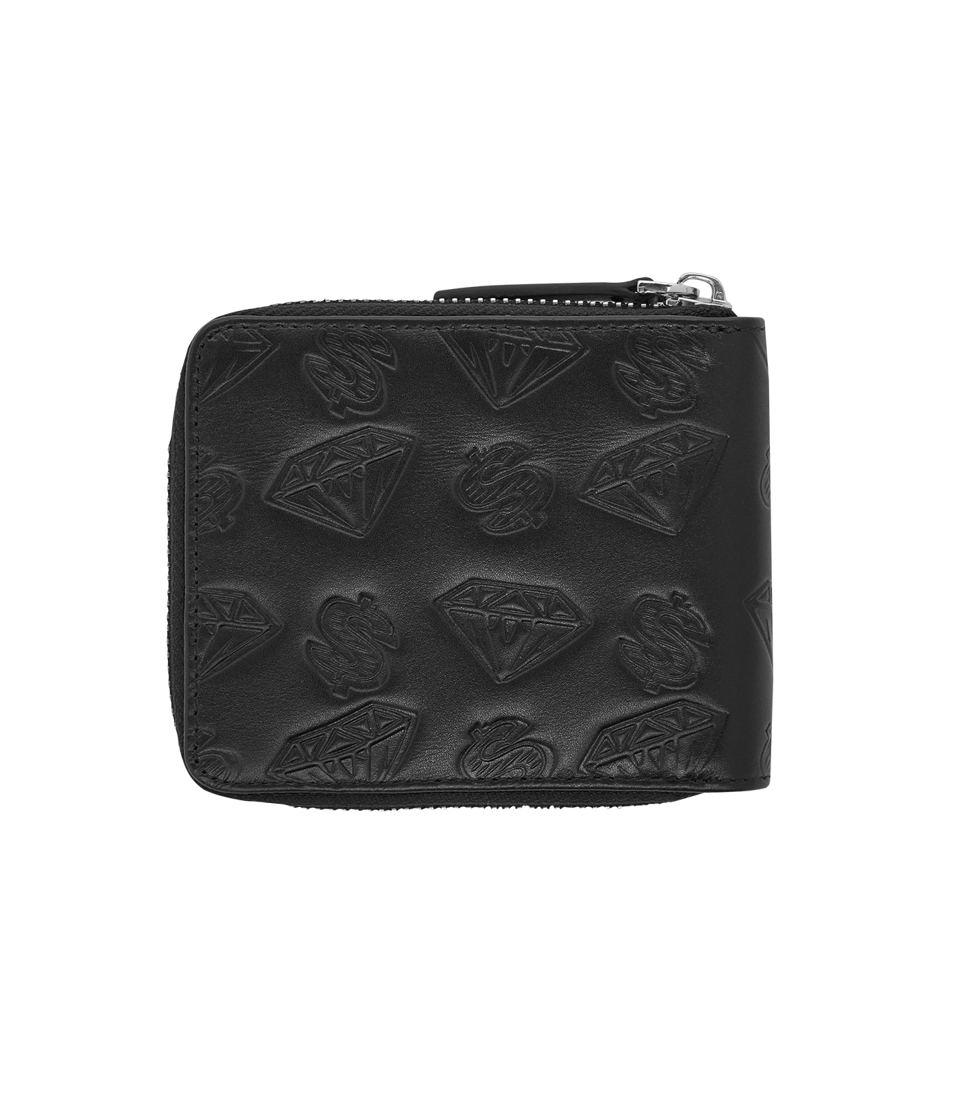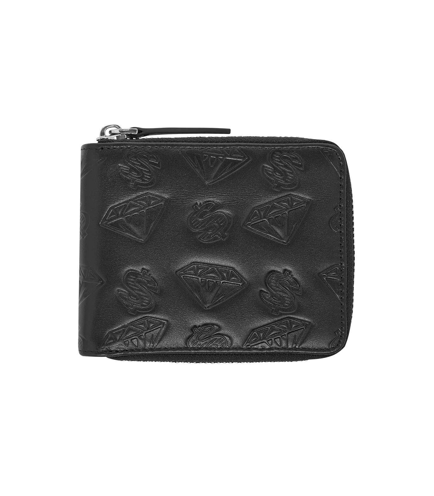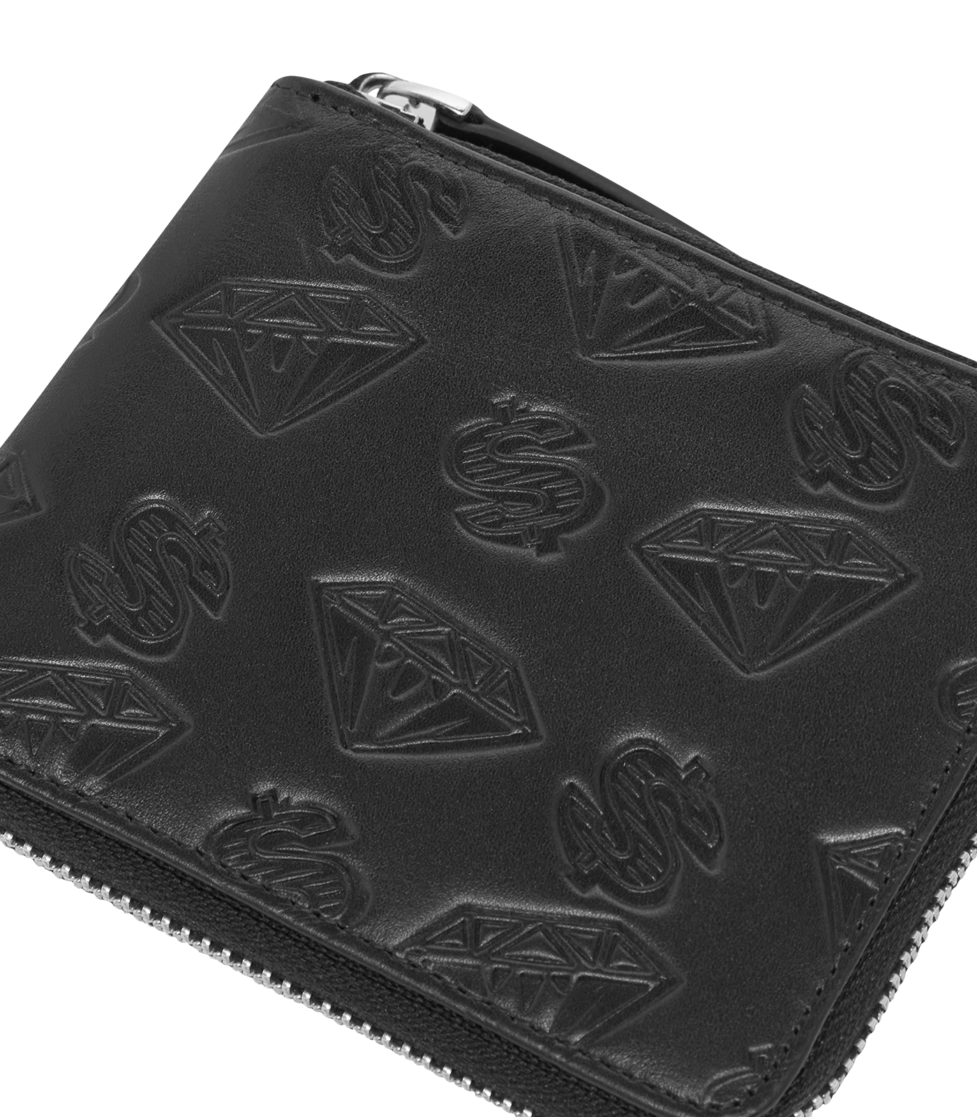 Billionaire Boys Club Pre-Fall '25 - 100% calfskin leather construction wallet presenting the Billionaire Boys Club Diamonds & Dollars debossed graphic, 3 quick-access card slots and coin purse.