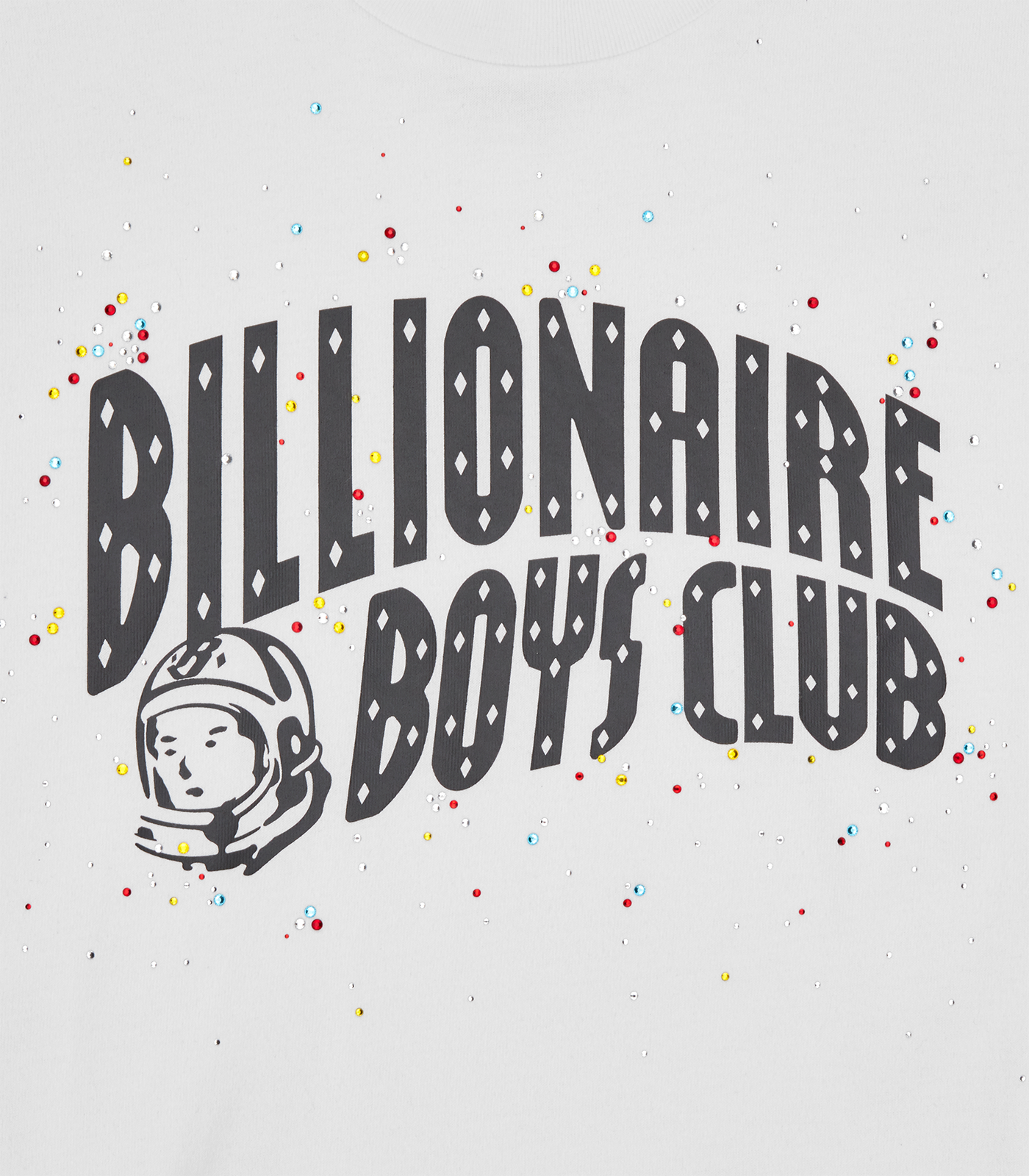 Billionaire Boys Club Spring '25 - Embellished Arch Logo T-Shirt, produced using 100% cotton, it features the embellished with rhinestones Billionaire Boys Club Arch logo at front and the iconic standing astronaut at back neck.