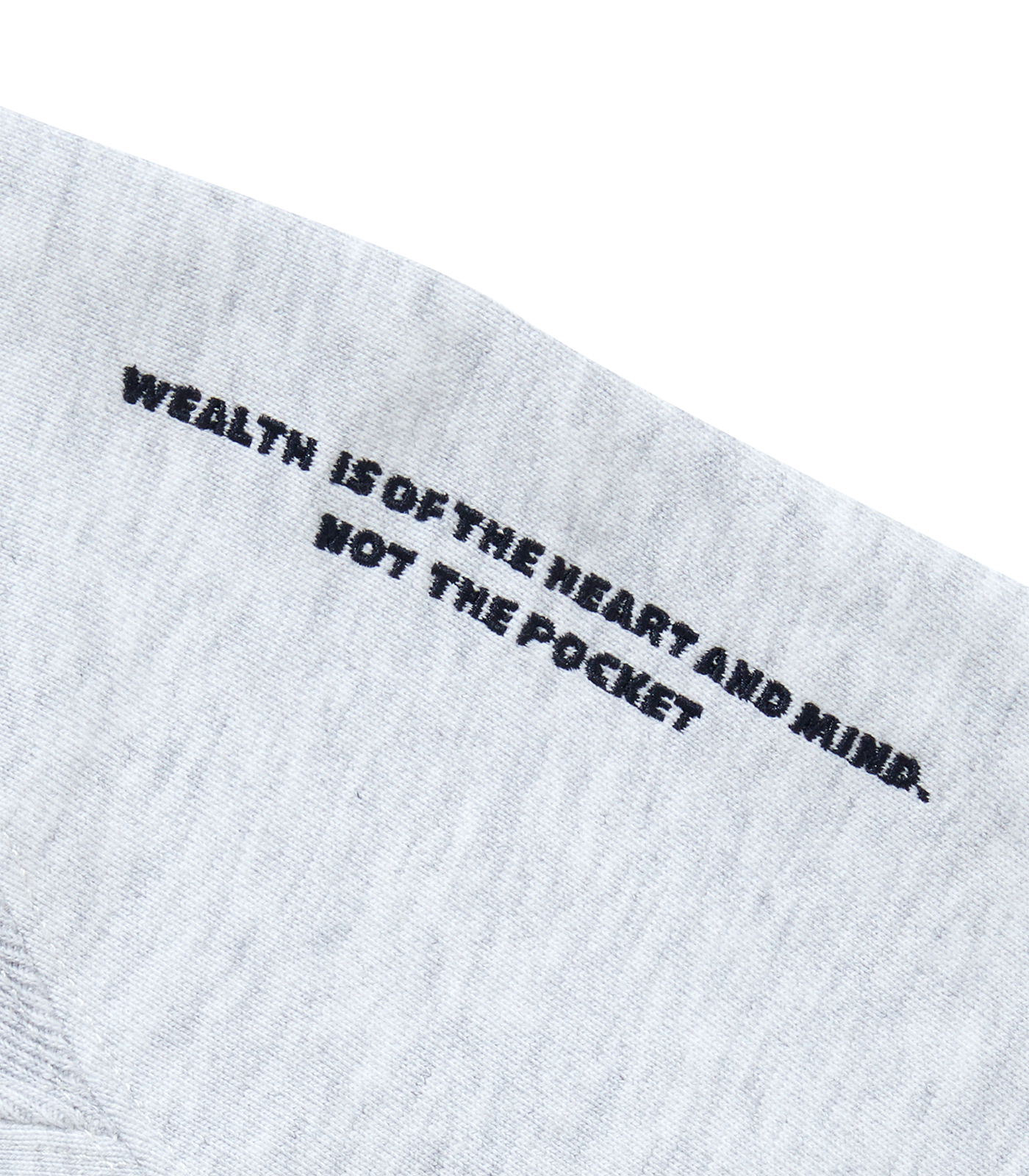 BILLIONAIRE BOYS CLUB JAPAN - The Embroidered Logo Gusset Sweatshirt presents the embroidered brand astronaut logo at the front. The left shoulder features the brand statement, "WEALTH IS OF THE HEART AND MIND, NOT THE POCKET."