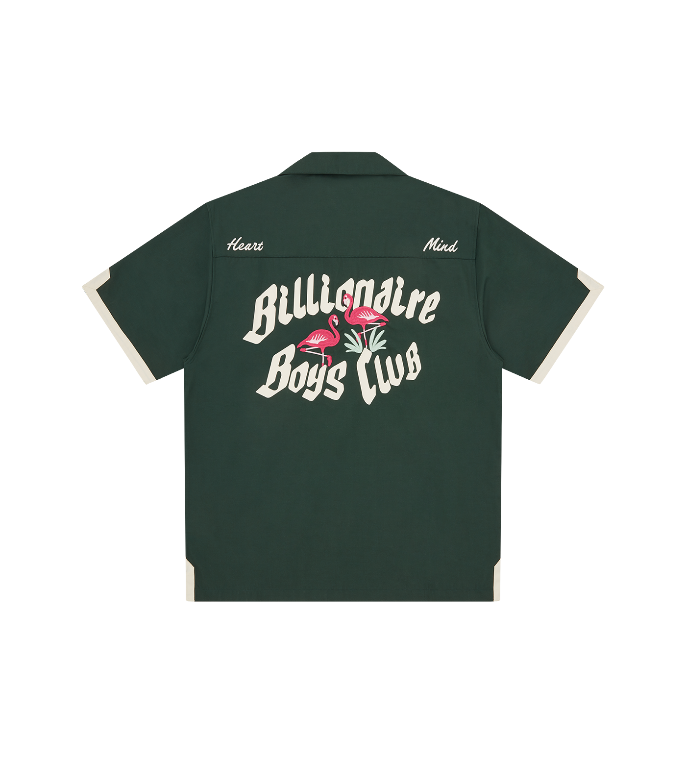 FLAMINGO BOWLING SHIRT - DARK GREEN