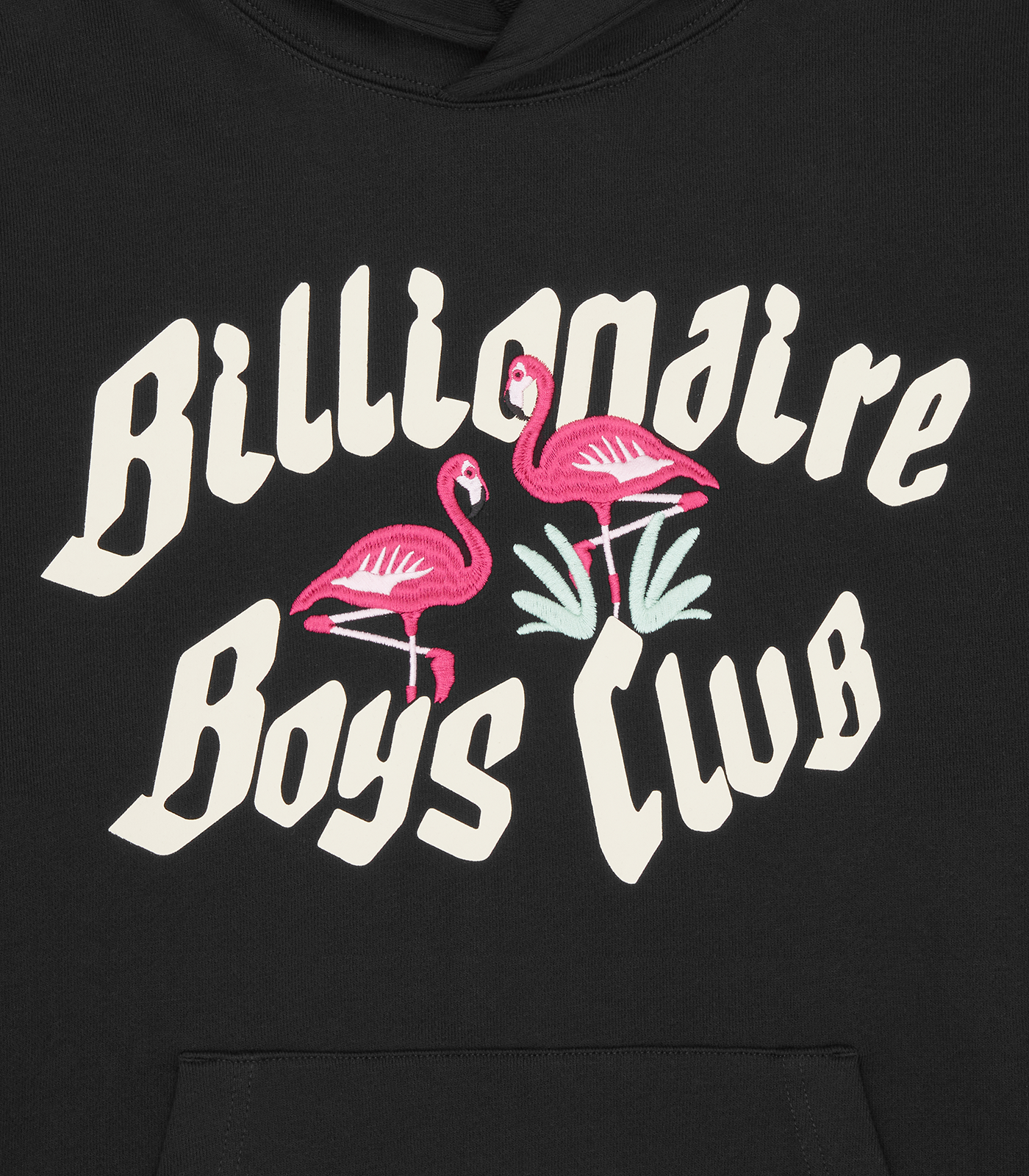 Billionaire Boys Club Pre-Fall '25 - This Flamingo Popover Hood features the Billionaire Boys Club flamingo graphic at the chest and the standing astronaut at back neck. Matching sweatpants available.