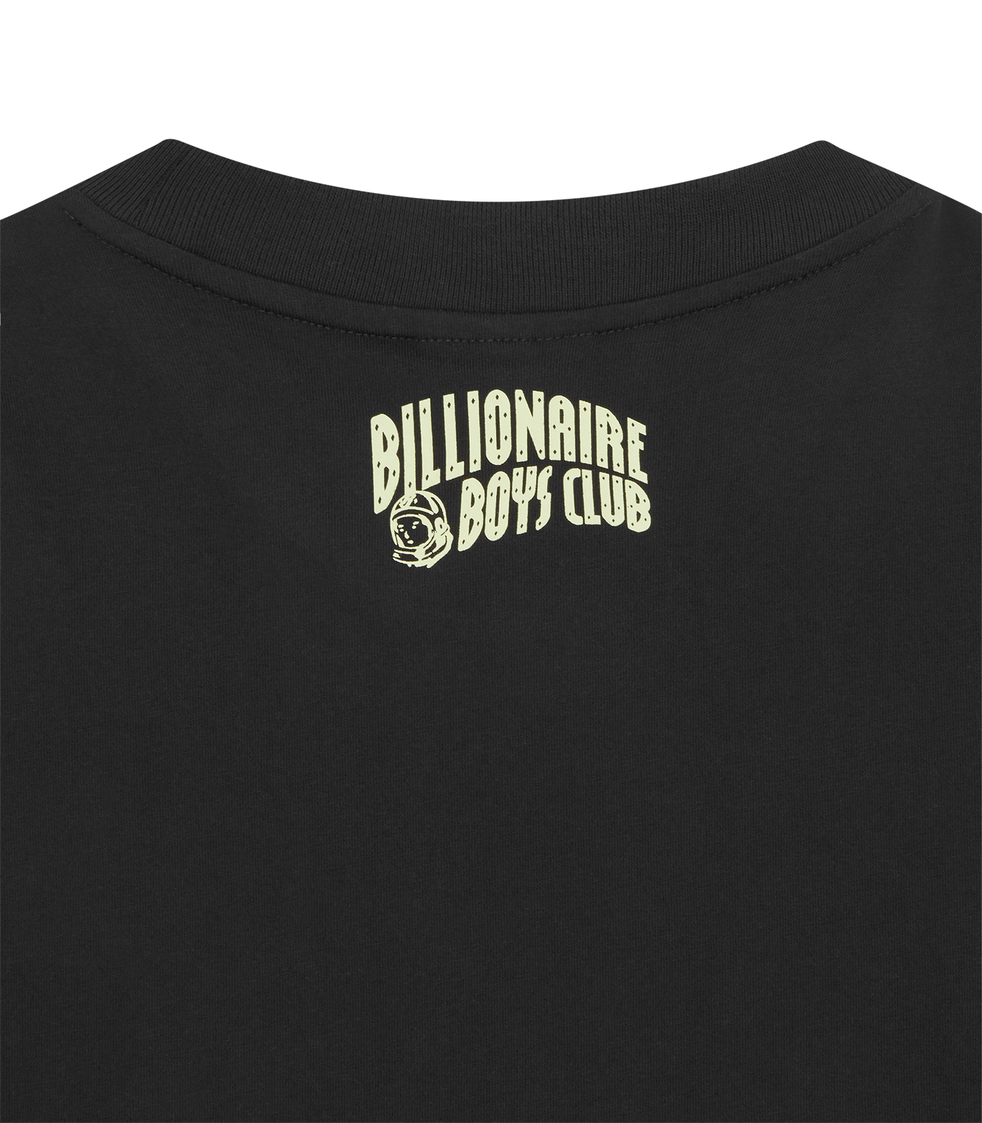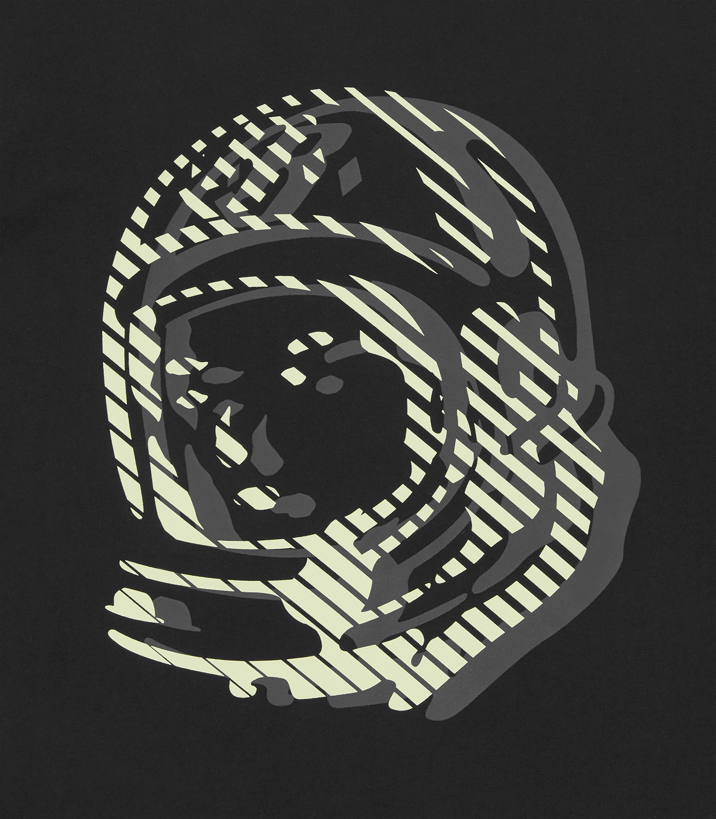 Billionaire Boys Club Pre-Spring '26 - The Glow Astro T-shirt features the Astro helmet astronaut at front and the iconic Billionaire Boys Club Arch logo at back neck with a glow-in-the-dark effect.