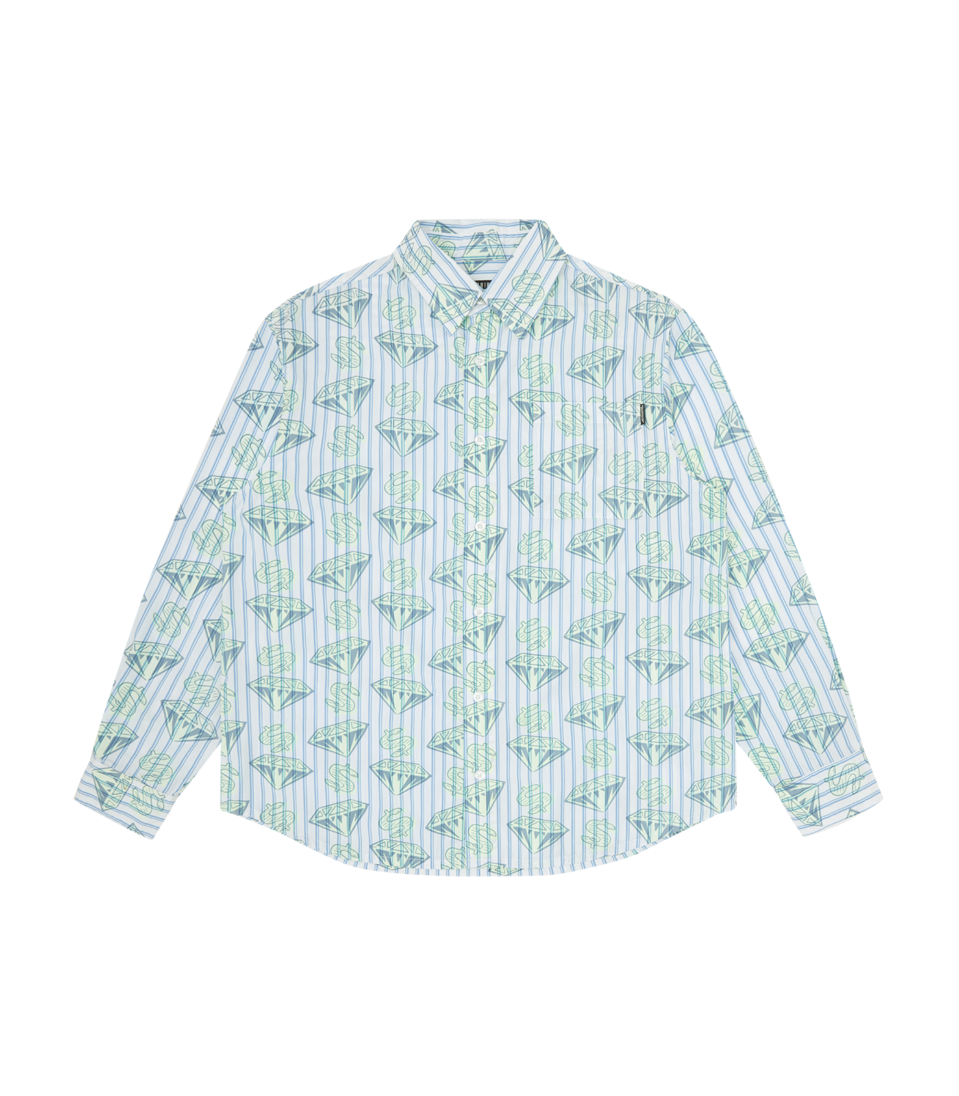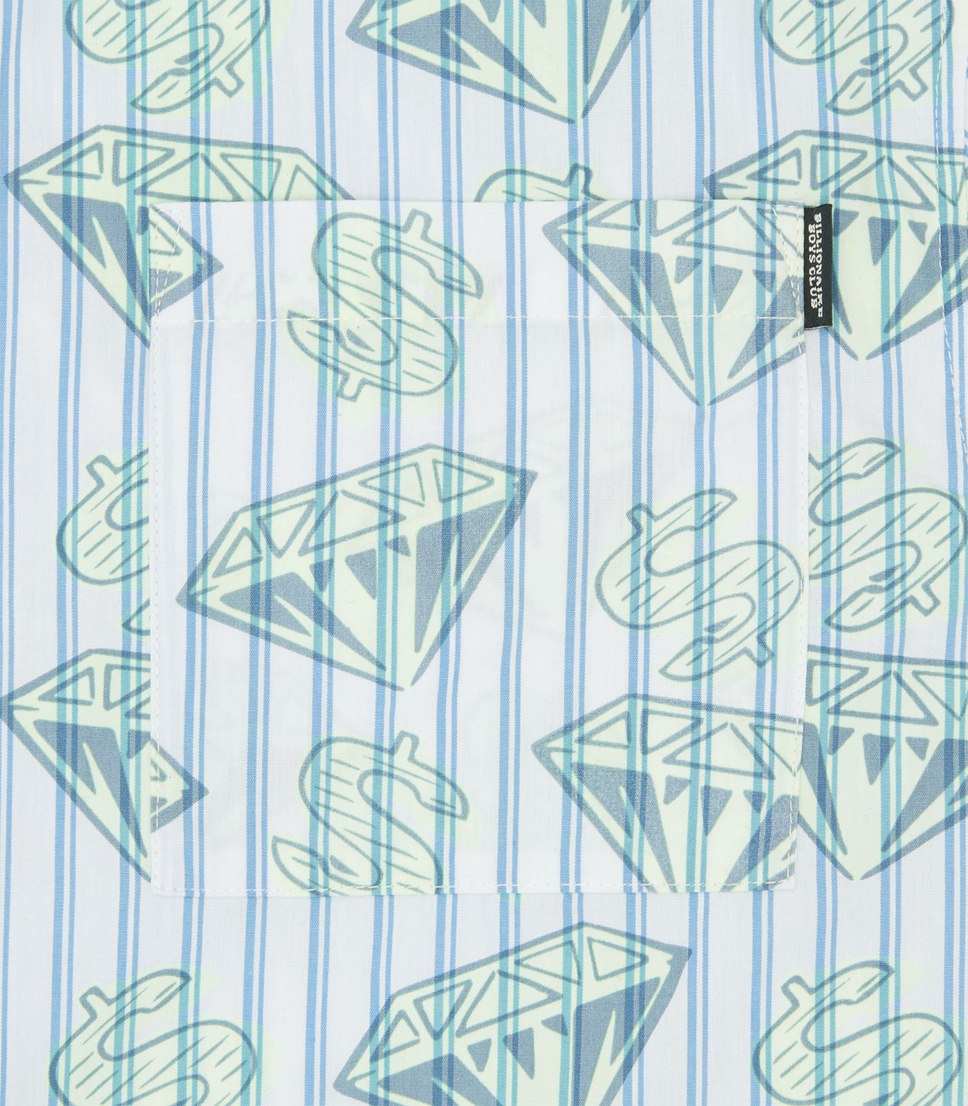 Share: GLOW IN THE DARK DIAMONDS & DOLLARS STRIPED SHIRT - WHITE/BLUE STRIPE