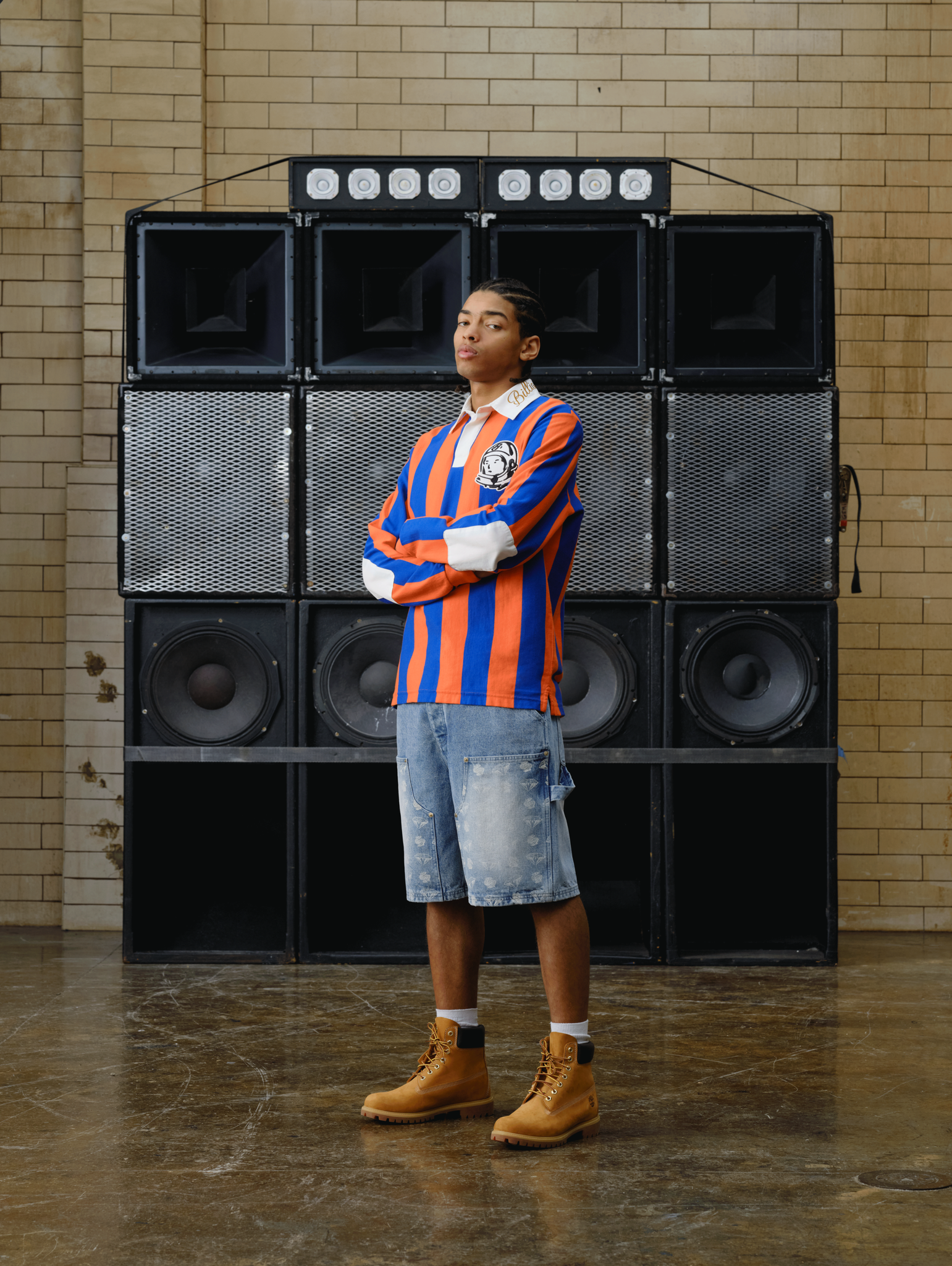 Billionaire Boys Club Fall '25 - Produced using 100% cotton, the Heavy Striped Rugby Shirt features the embroidered Astro helmet patch at front and a classic shirt-style collar. Puff-printed style kit number '03' on the back.