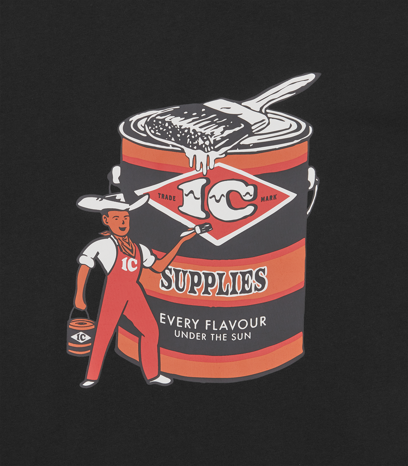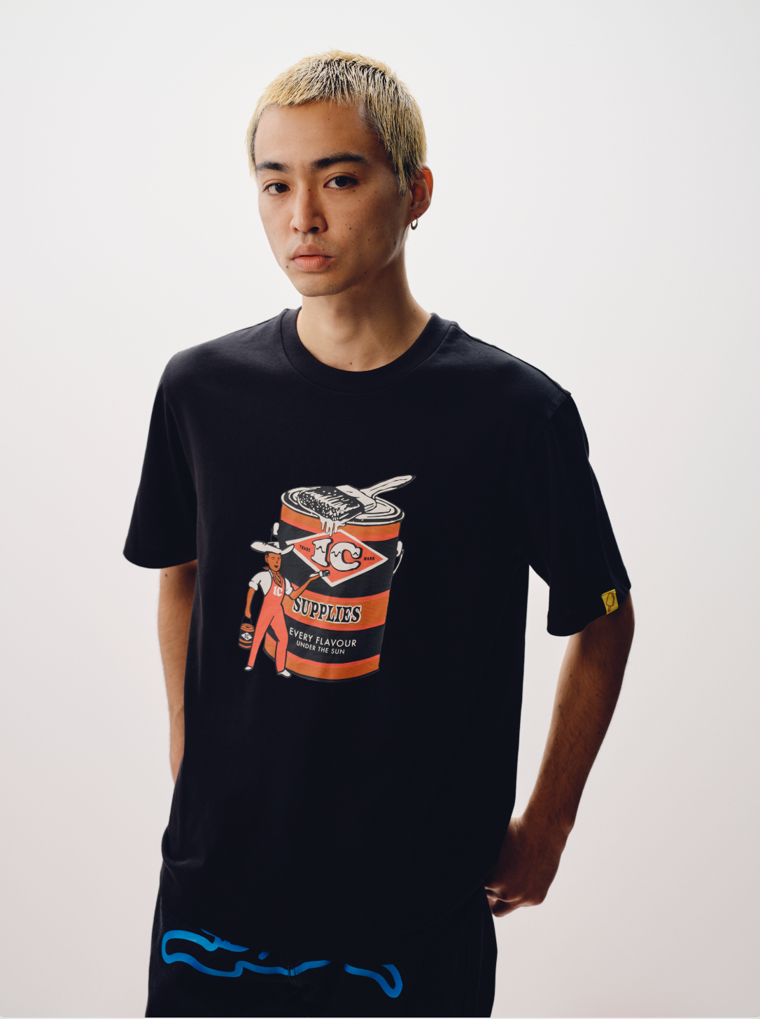 ICECREAM Pre-Fall '25 - The IC Supplies T-shirt presents the IC supplies graphic on the front and the IC signet on the back neck.