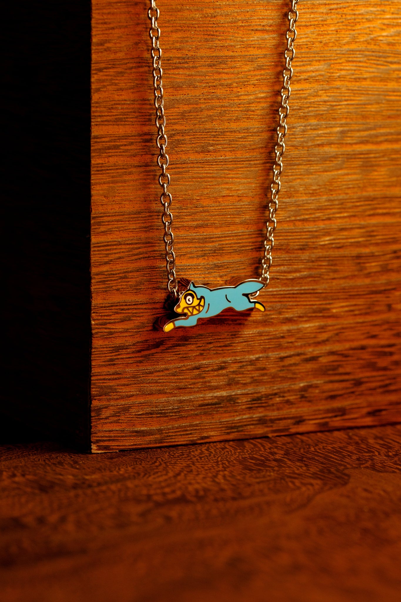 Share: ICECREAM RUNNING DOG CHAIN NECKLACE - SILVER/BLUE