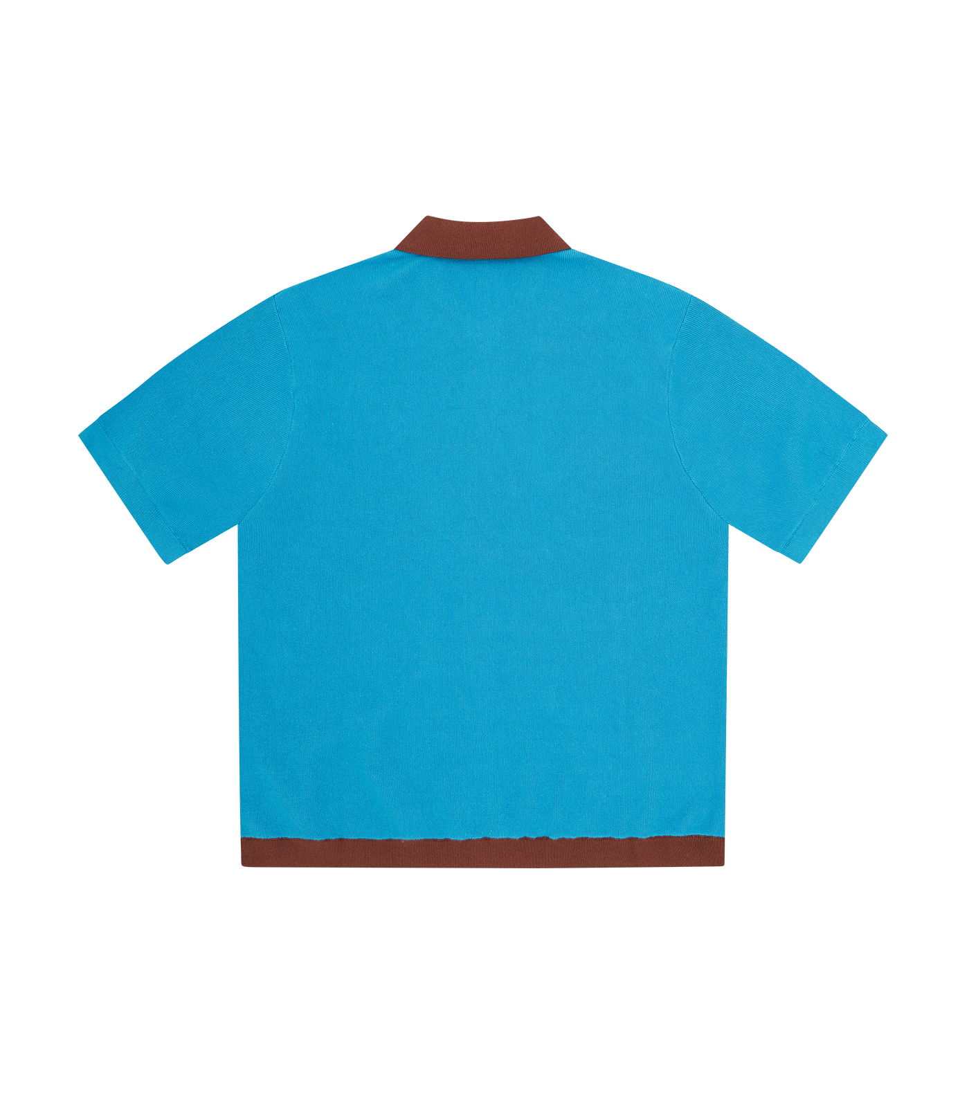 Share: JACQUARD KNIT SHORT SLEEVE POLO CARDIGAN - BLUE
