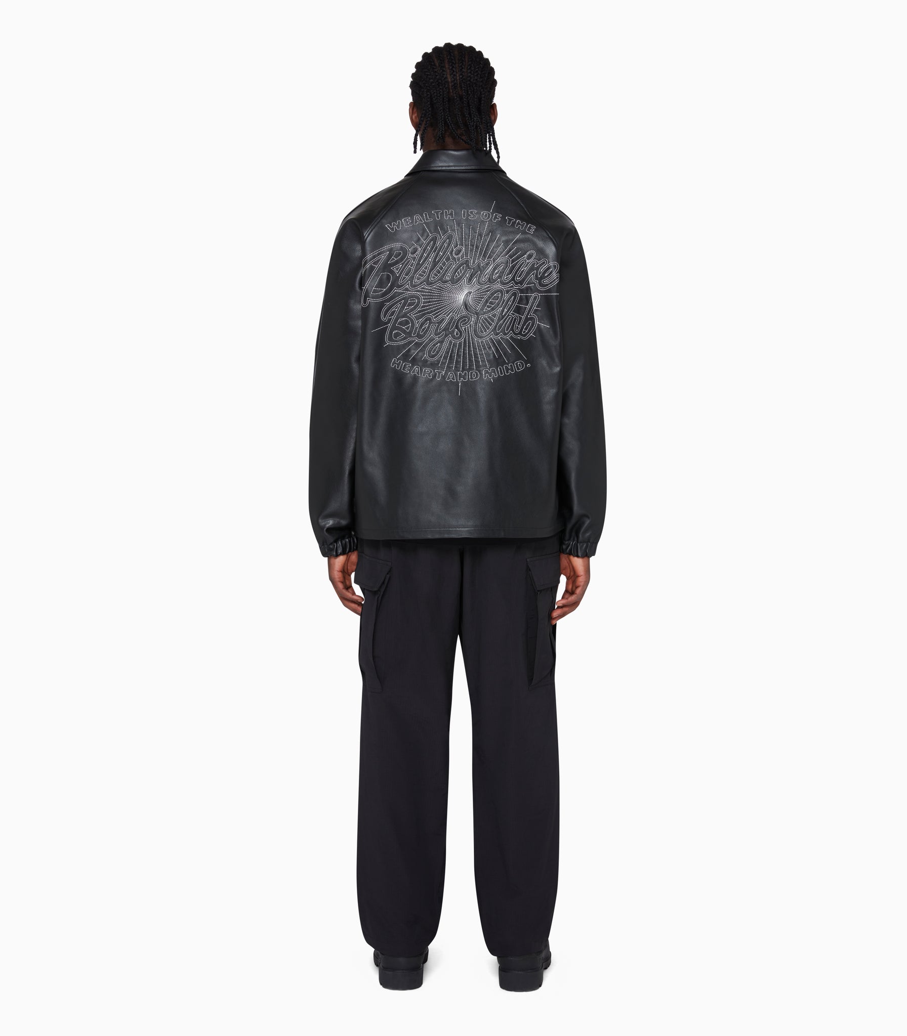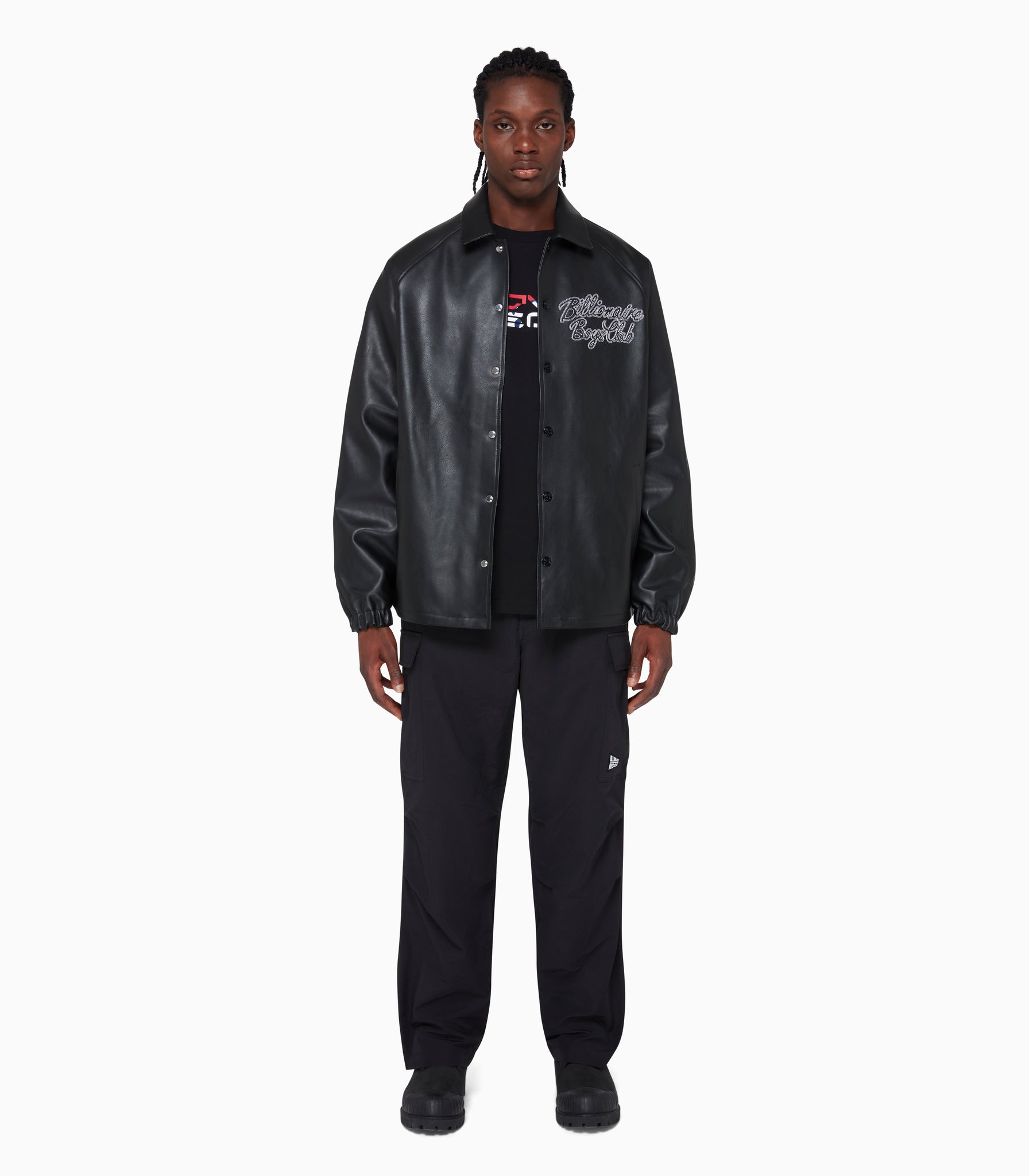 Available in a limited edition run, the Leather Coach Jacket for Billionaire Boys Club Pre-Spring '25 is made using 100% leather and features chainstitch logo detailing across both the chest and back. With a quilted lining perfect for milder conditions, elasticated cuffs and BBC helmet branded popper-fasten closures provide refinement and comfort.