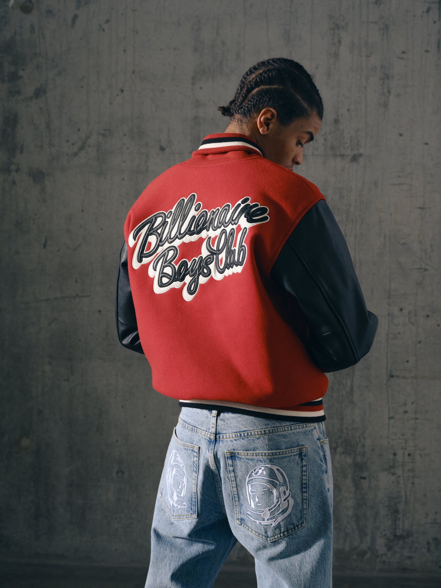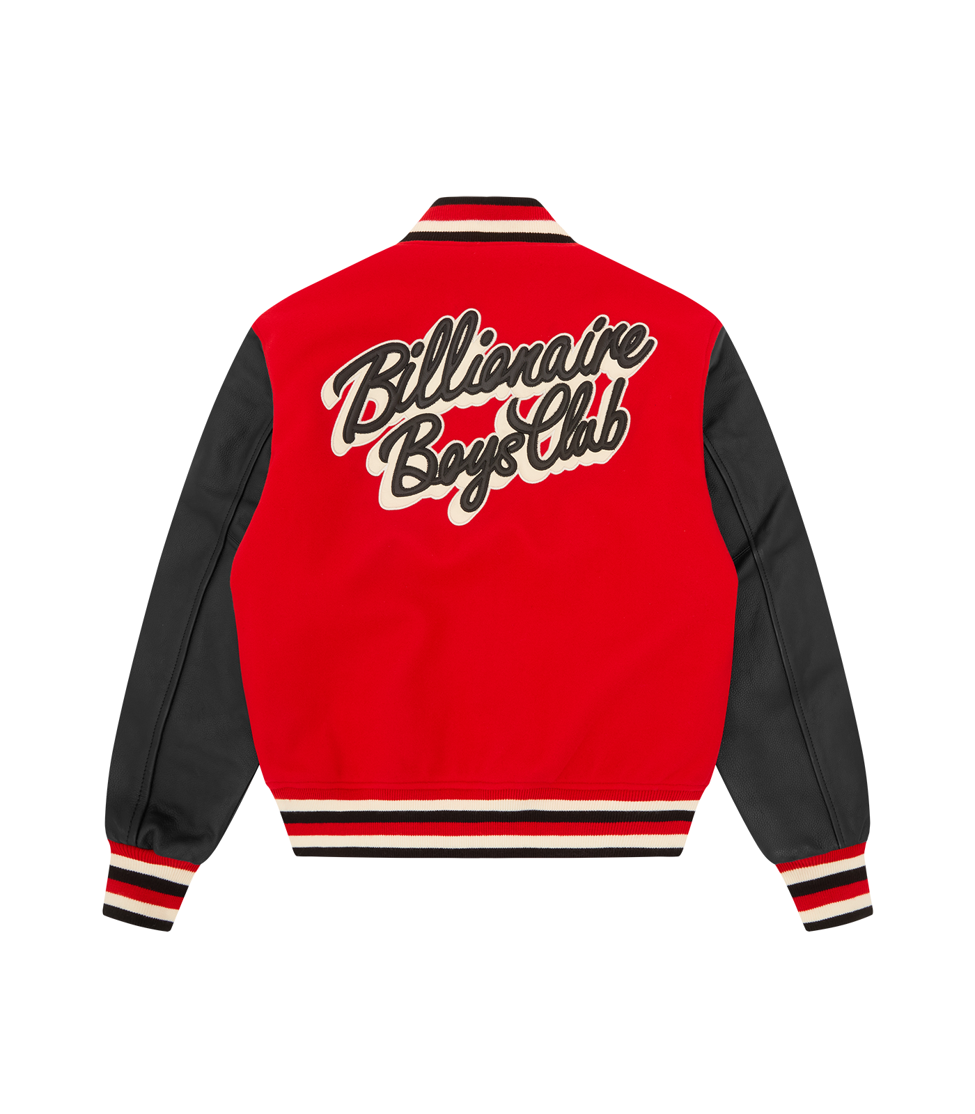 Billionaire Boys Club Pre-Spring '26 - Designed with 100% genuine leather sleeves, it showcases the iconic Billionaire Boys Club Script logo across the back. Branded appliqué details and dual front pockets complete this premium piece.