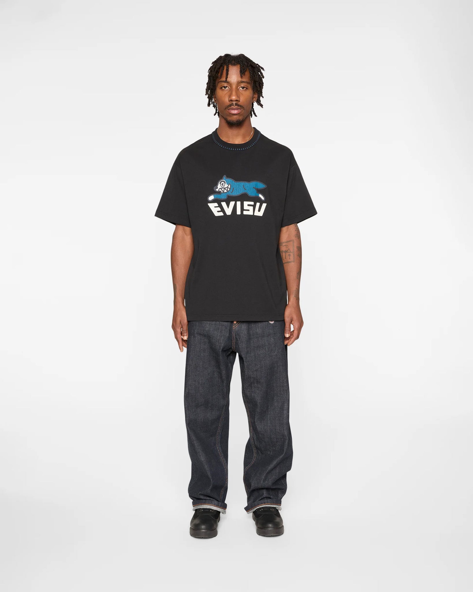 EVISU X ICECREAM - A relaxed-fit short sleeve tee featuring a bold logo with EVISU printed graphic across the chest. Crafted from 16S/1 100% cotton jersey for a soft hand feel and elevated everyday wear.