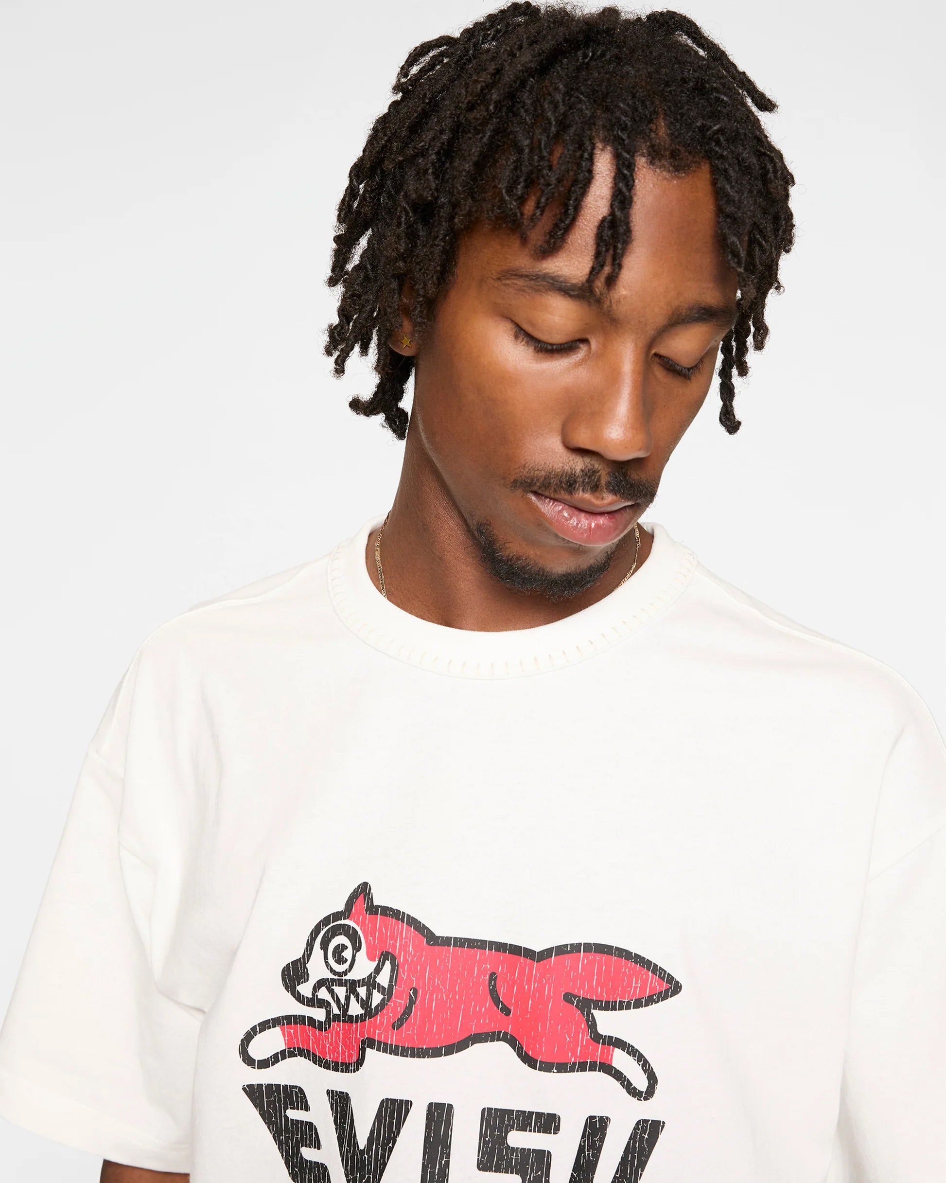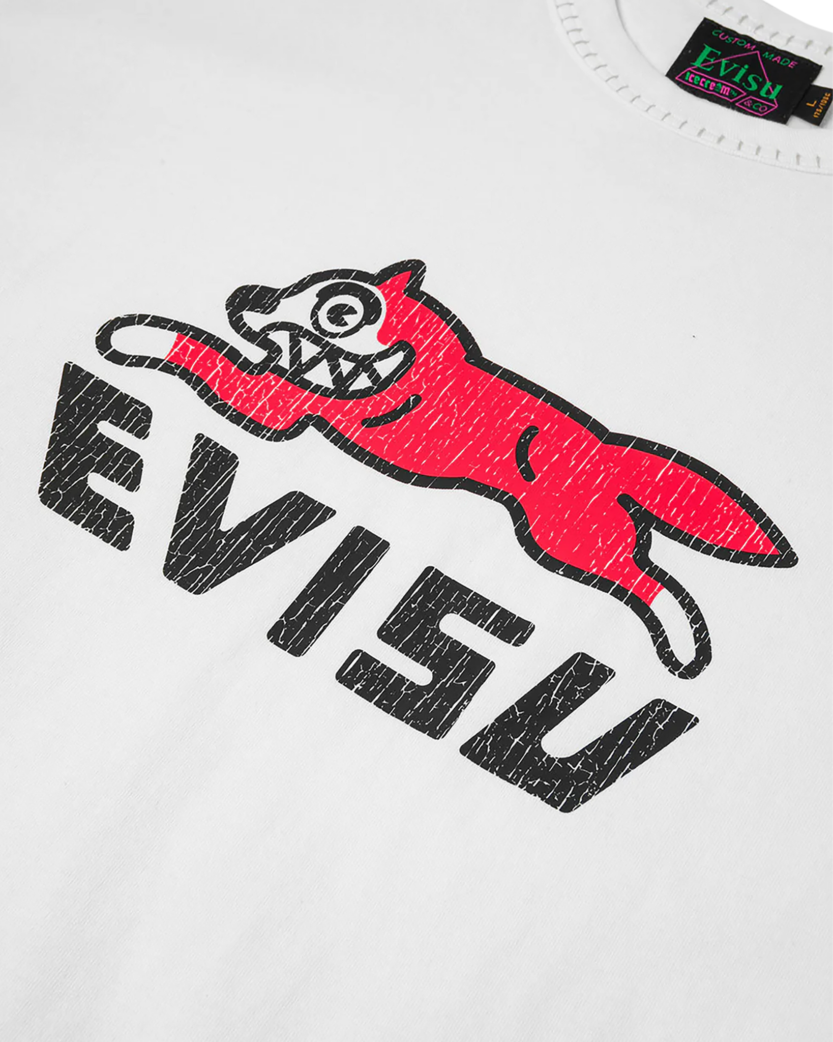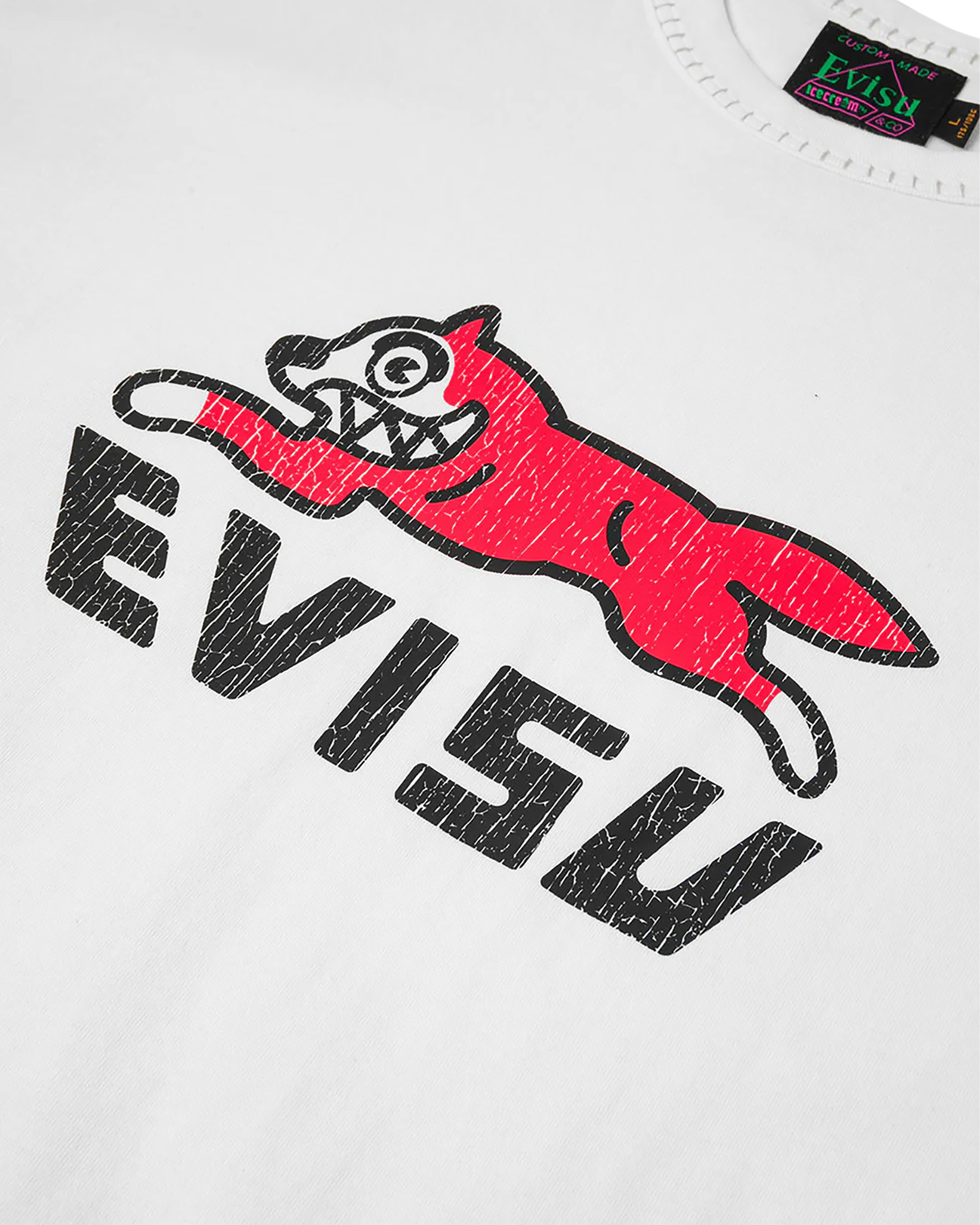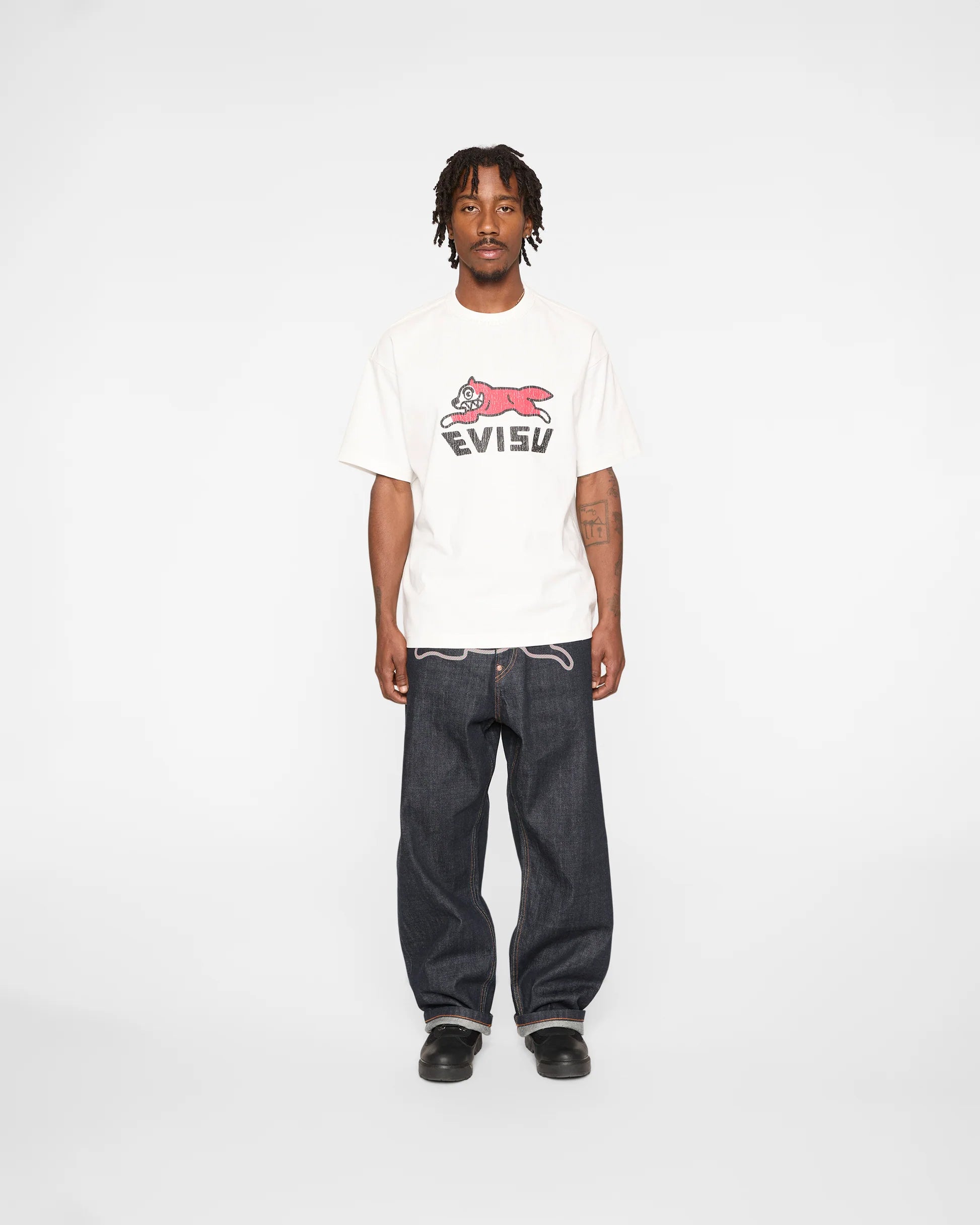 EVISU X ICECREAM - A relaxed-fit short sleeve tee featuring a bold logo with EVISU printed graphic across the chest. Crafted from 16S/1 100% cotton jersey for a soft hand feel and elevated everyday wear.