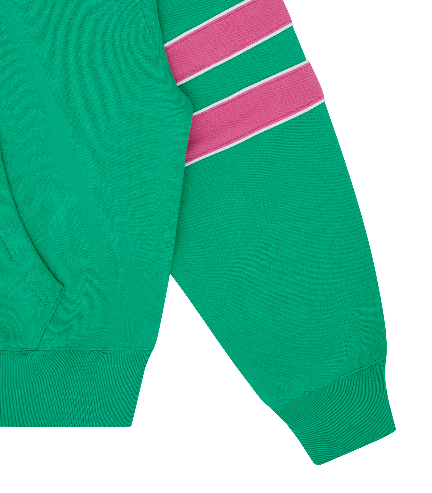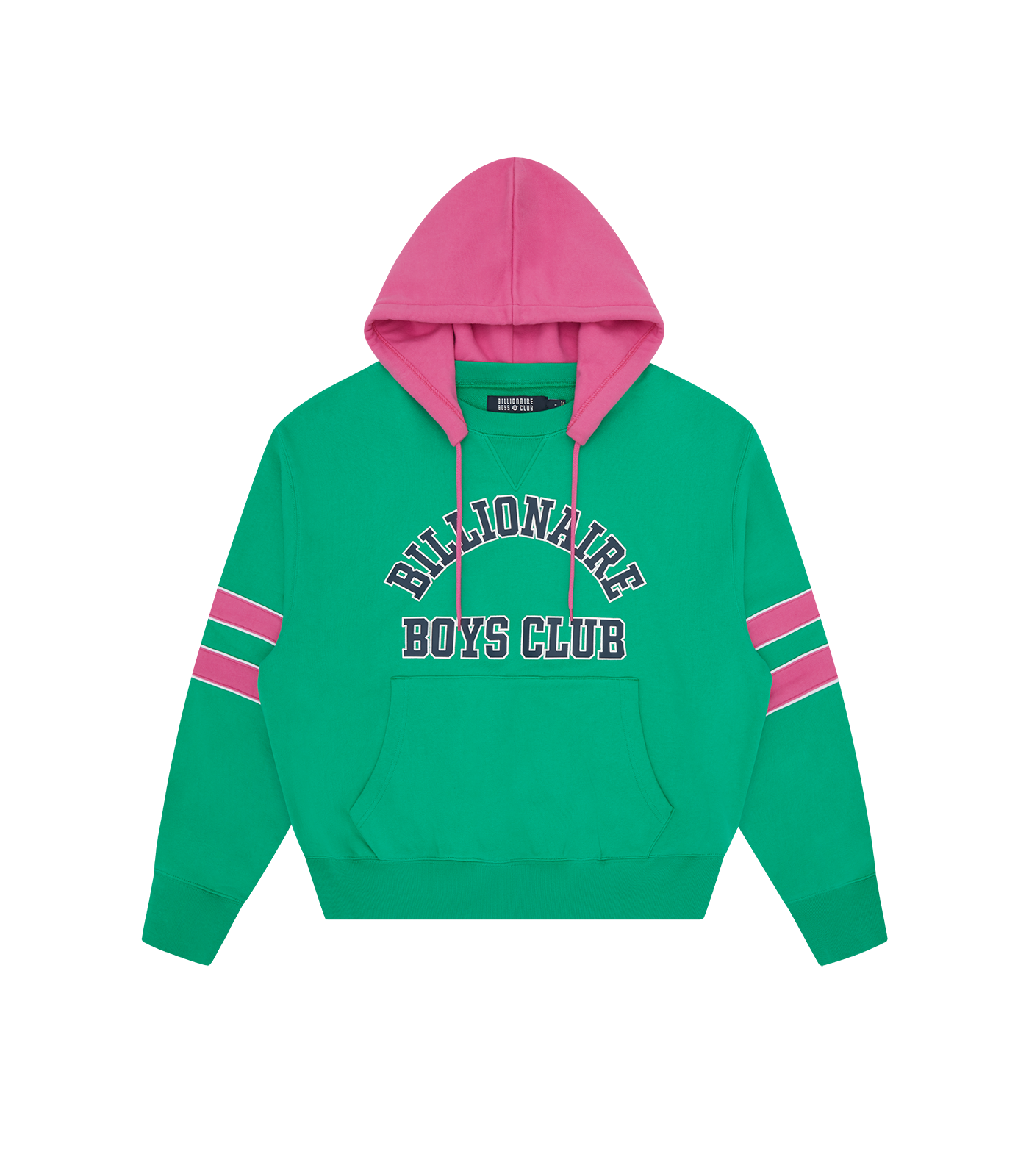 Share: OVERSIZED COLLEGE POPOVER HOOD - GREEN/PINK