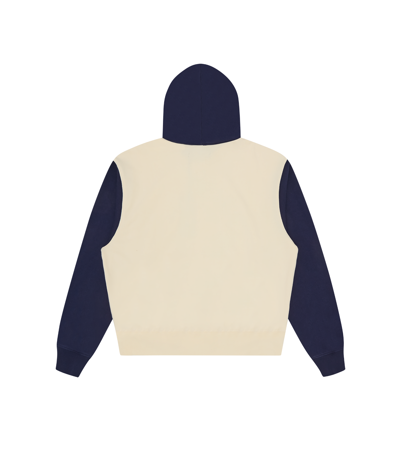 Share: OVERSIZED DOUBLE PRINT POPOVER HOOD - NAVY/ECRU
