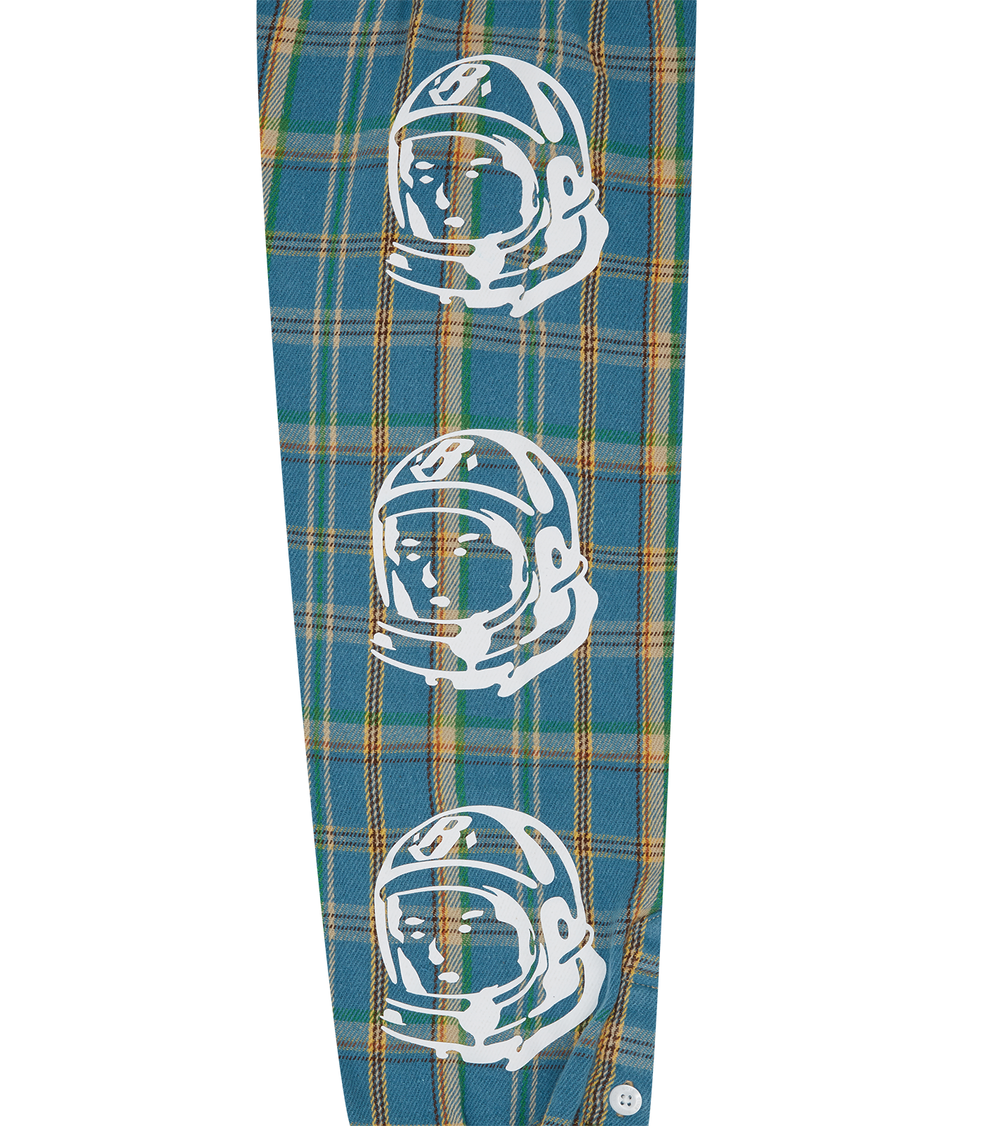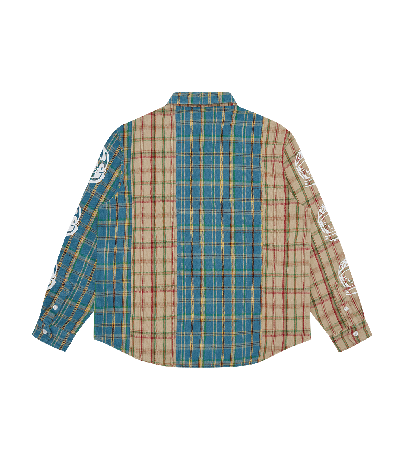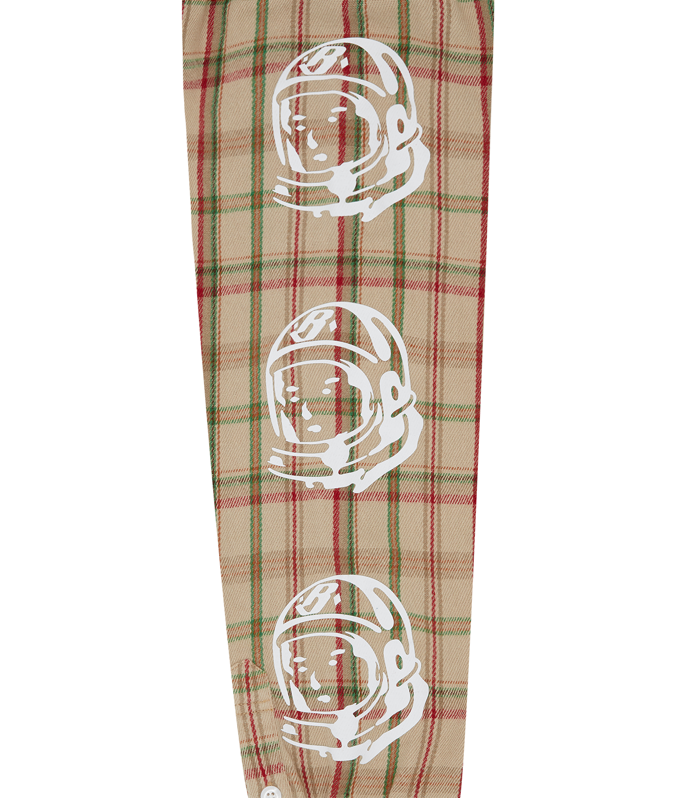Billionaire Boys Club Pre-Fall '25 - This Panelled Check Shirt presents a block patchwork on the front and back; it is detailed with a printed Astro helmets on both the sleeves.