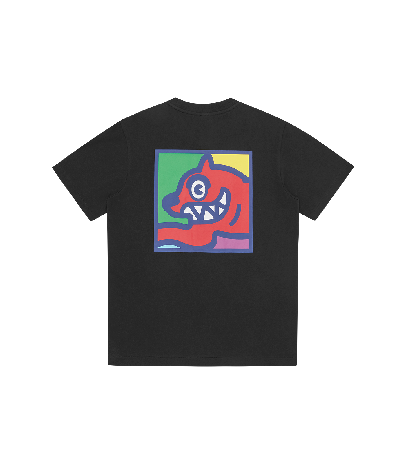 POP ART RUNNING DOG T-SHIRT - BLACK