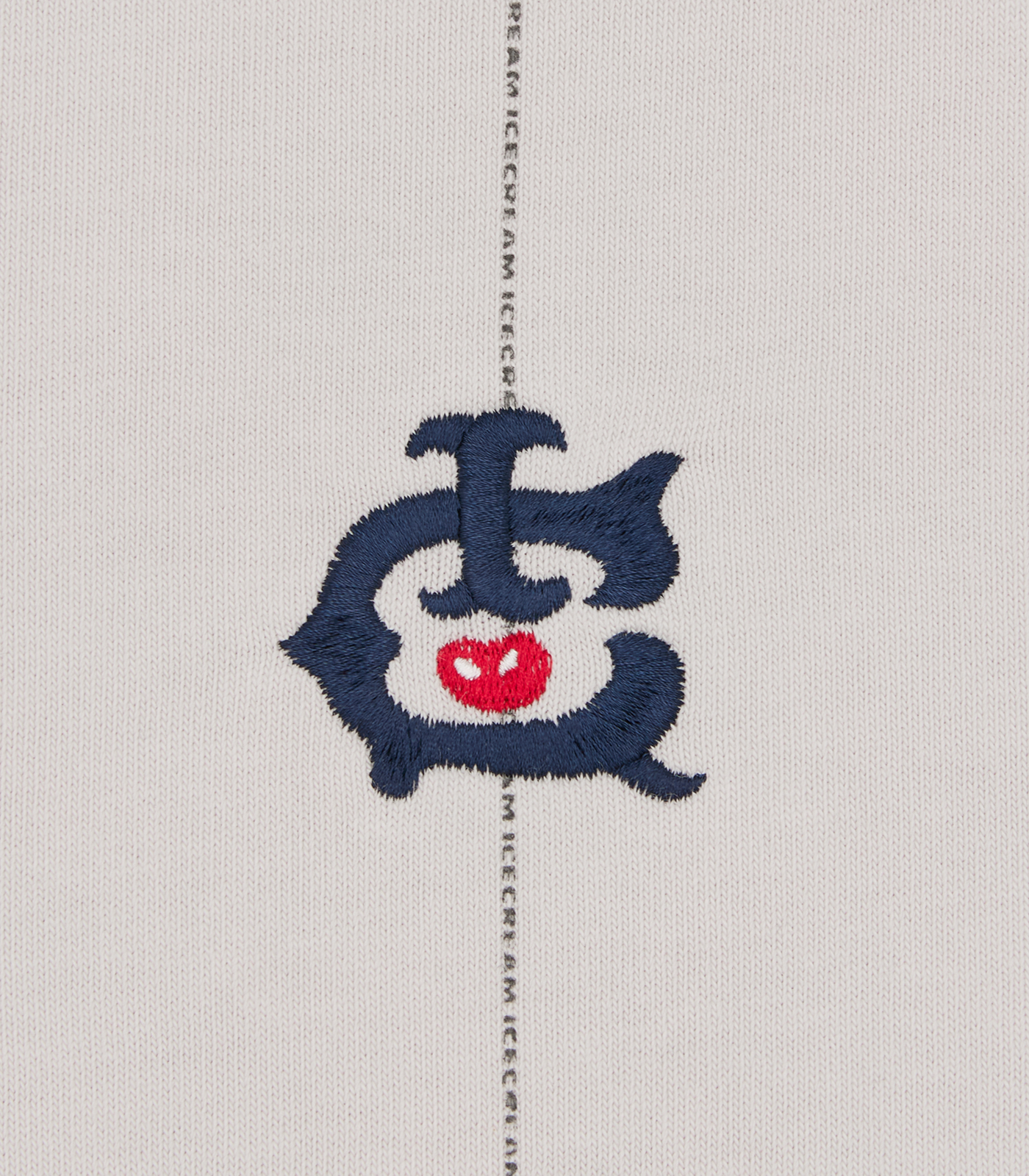 ICECREAM Fall '25 - Raglan Pinstripe Polo Shirt features the IC direct embroidery on the left chest and an all-over soft hand ICECREAM print.