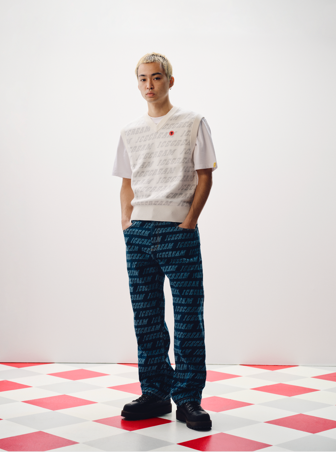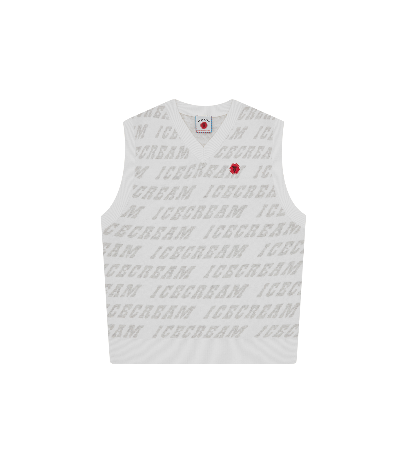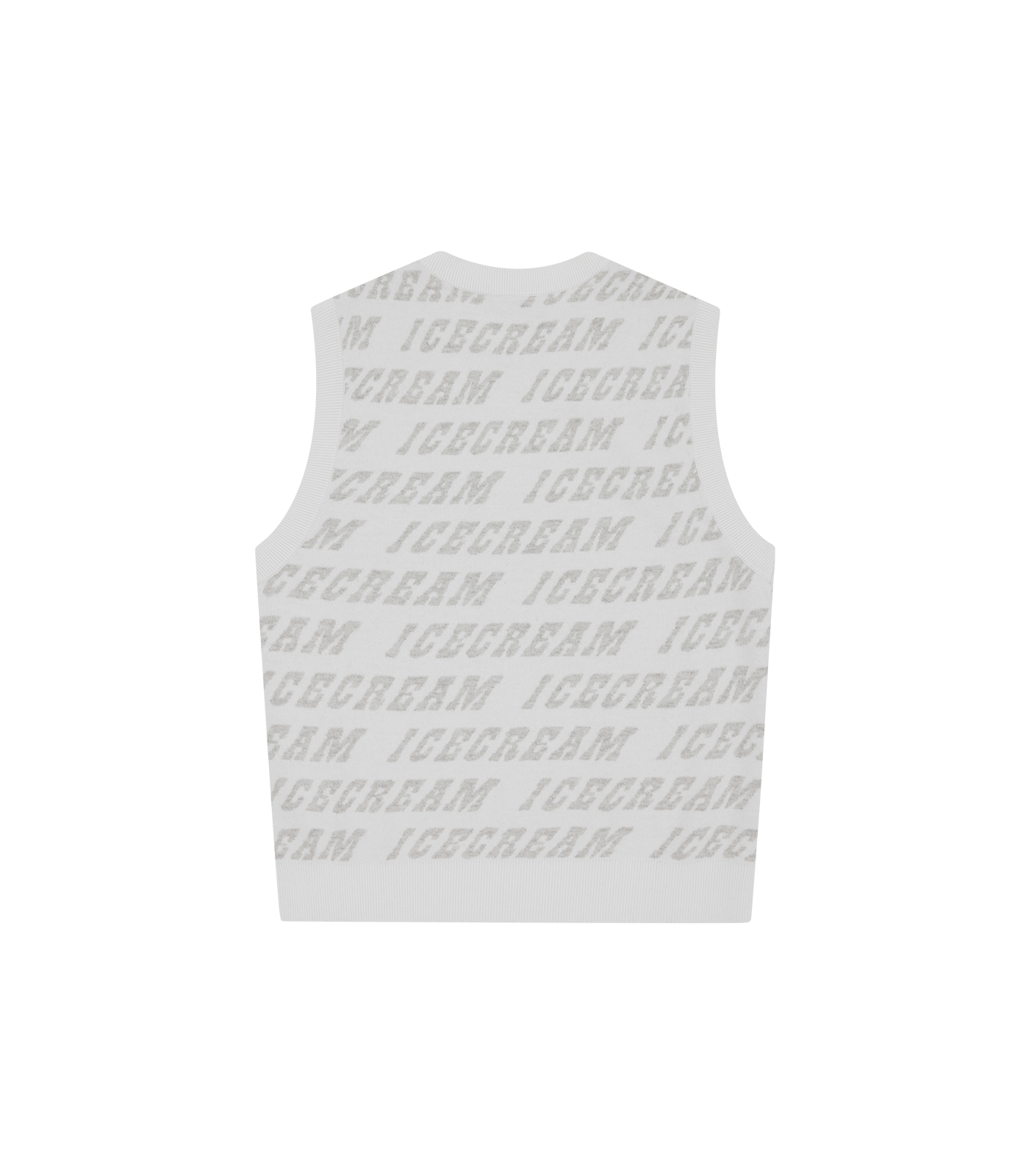 ICECREAM Pre-Fall '25 - Repeat Logo Knitted Vest featuring the all-over ICECREAM logo graphic and a v-neckline.