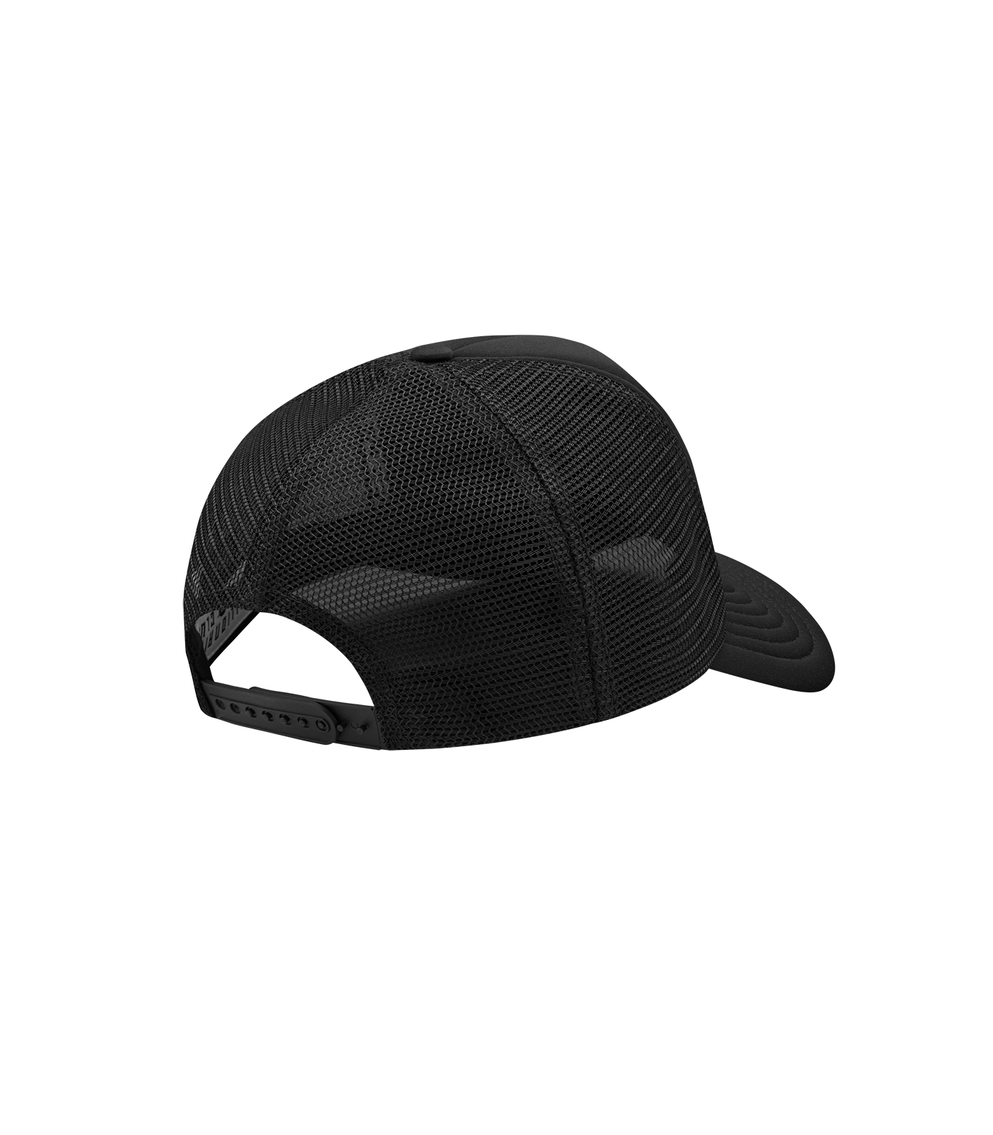 Share: RHINESTONE STRAIGHT LOGO TRUCKER CAP - BLACK
