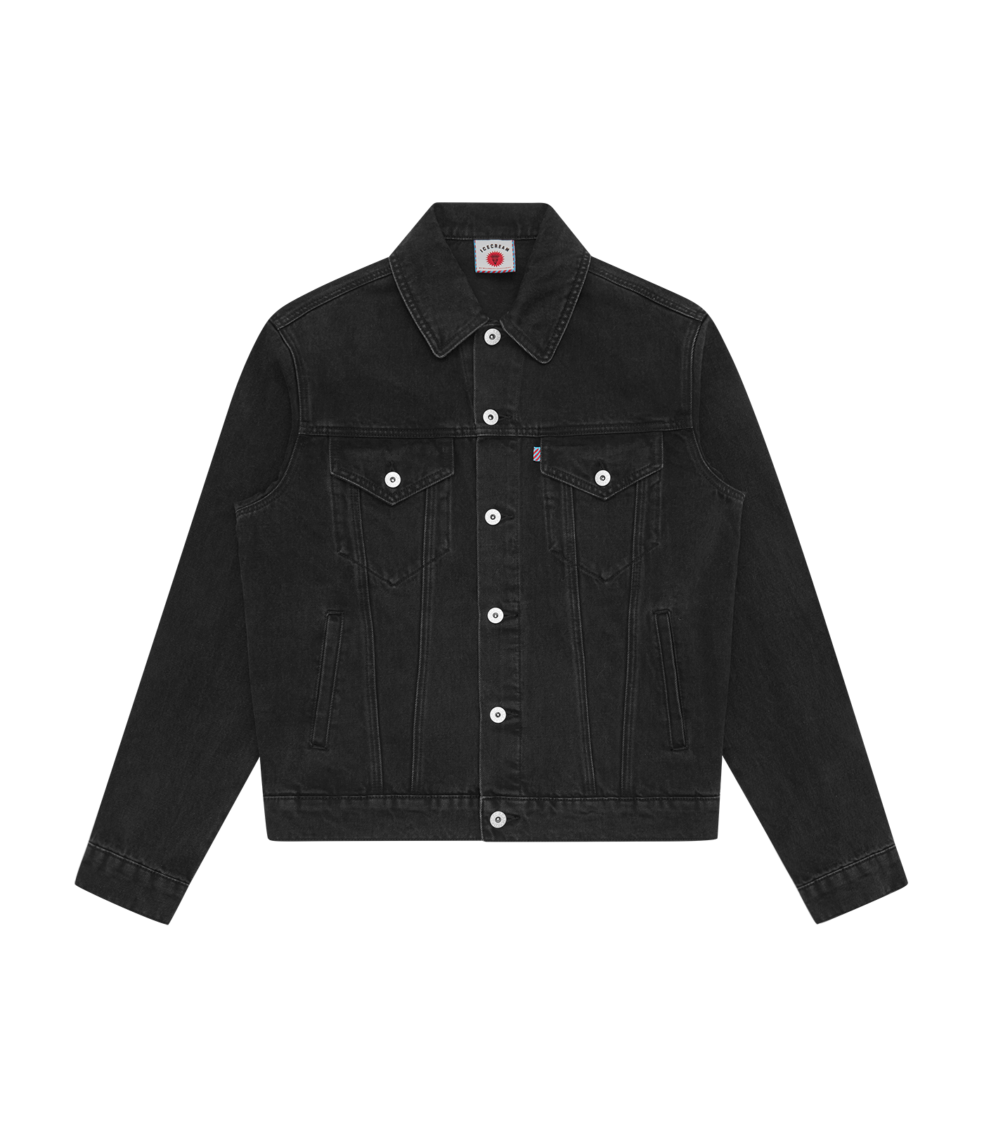 ICECREAM - This Running Dog Denim Trucker Jacket utilises a green wash and it presents a screen printed running dog graphic at the back.