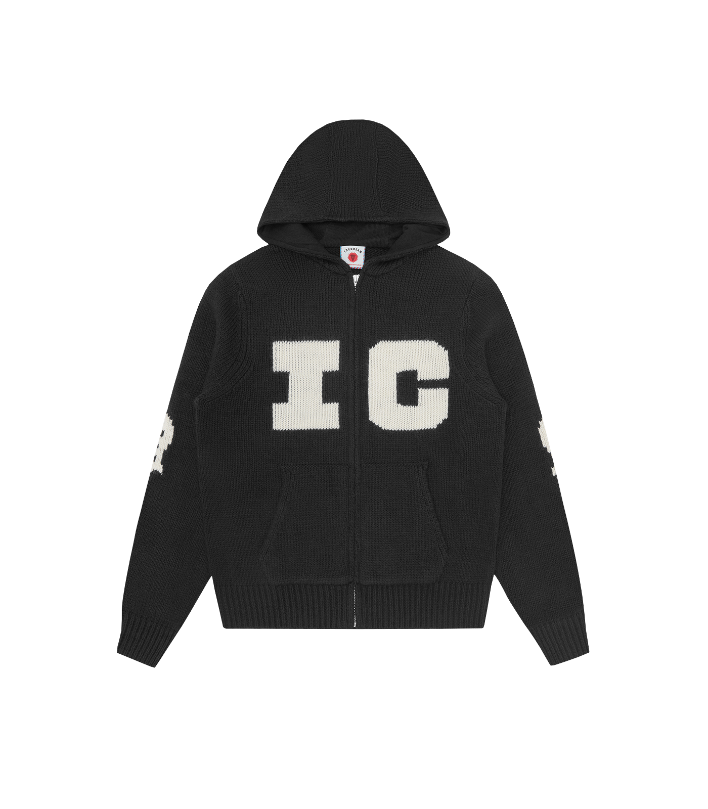 ICECREAM Spring '25 - This zip through hoodie presents the knitted IC letters at front and the iconic Running Dog at back. It is detailed with ICECREAM graphics on both the sleeves.