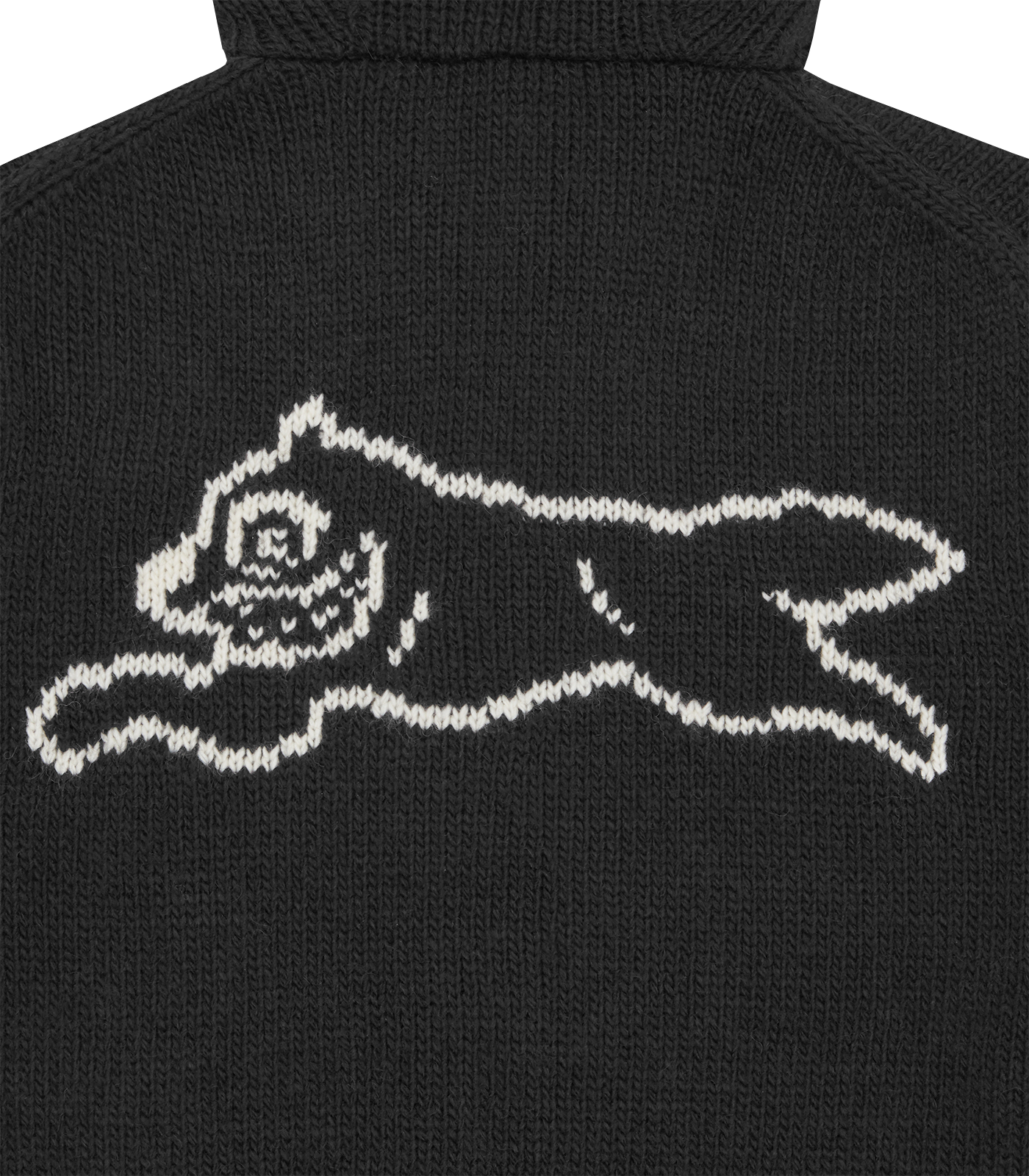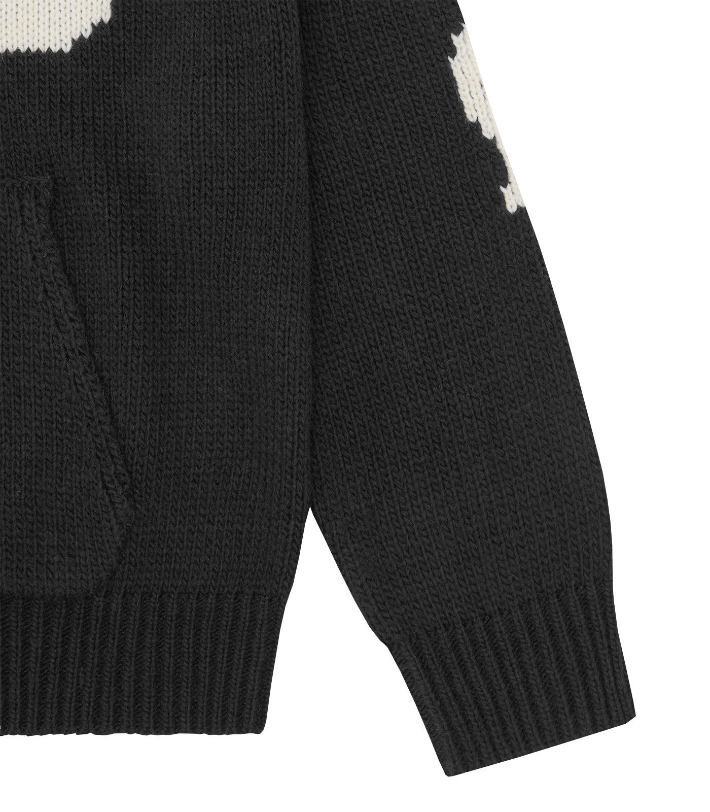 RUNNING DOG KNITTED ZIP THROUGH HOOD - BLACK