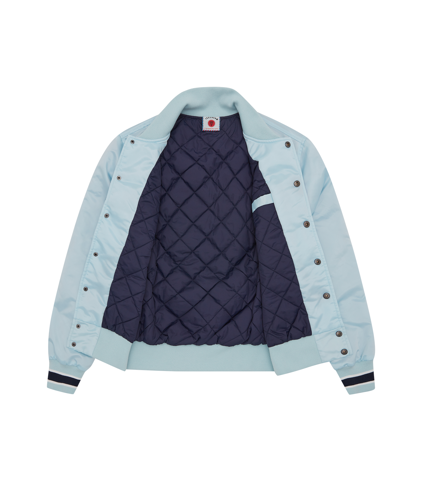 Share: RUNNING DOG SATIN BOMBER JACKET - ICE BLUE