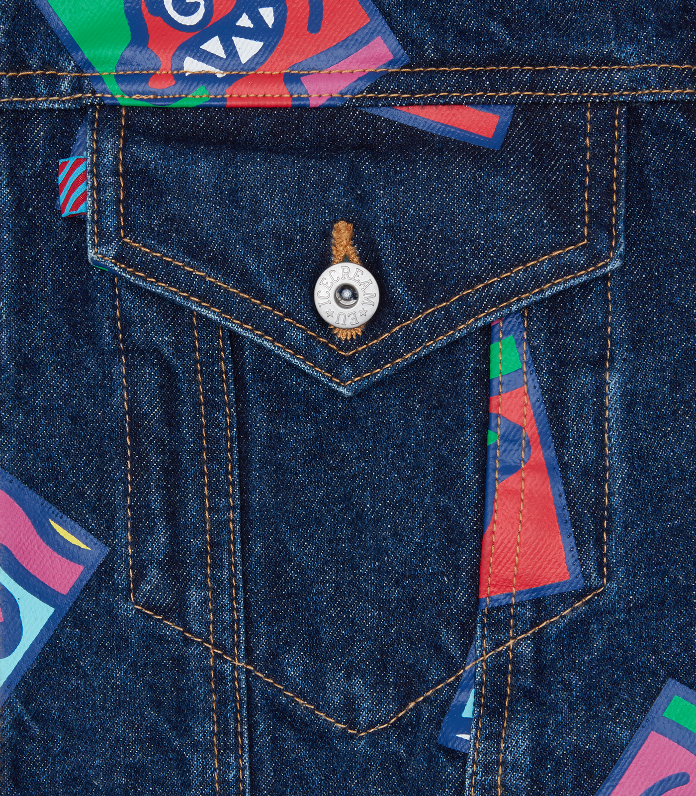 ICECREAM Fall '25 - This Running Dog Tile Denim Trucker Jacket presents an all-over Running Dog tile graphic. Coordinated denim pants available.