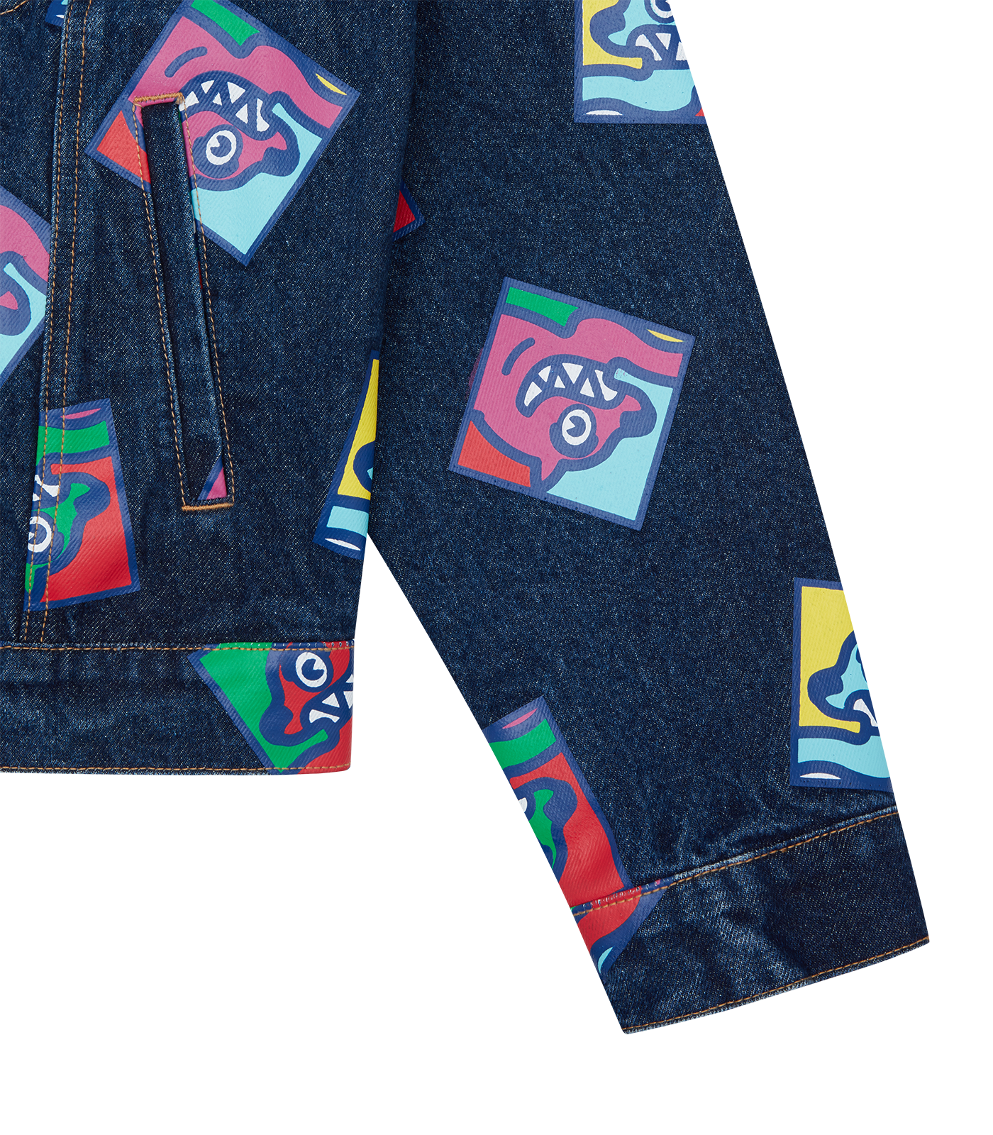 RUNNING DOG TILE DENIM TRUCKER JACKET - INDIGO