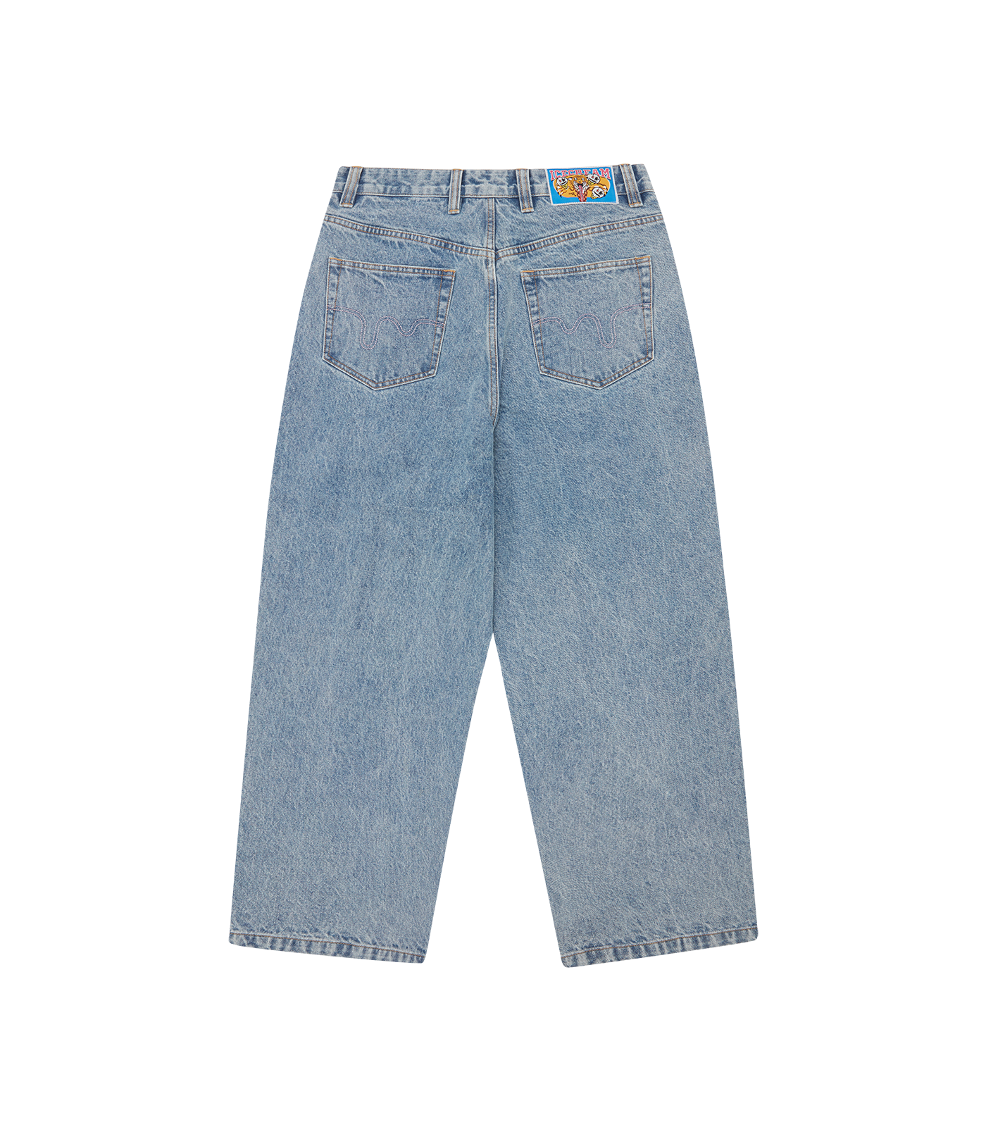 Share: RUNNING DOG TRIPLE SCOOP DENIM PANTS - HEAVY WASH BLUE