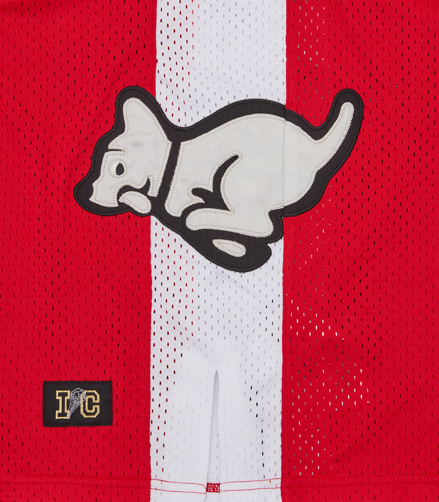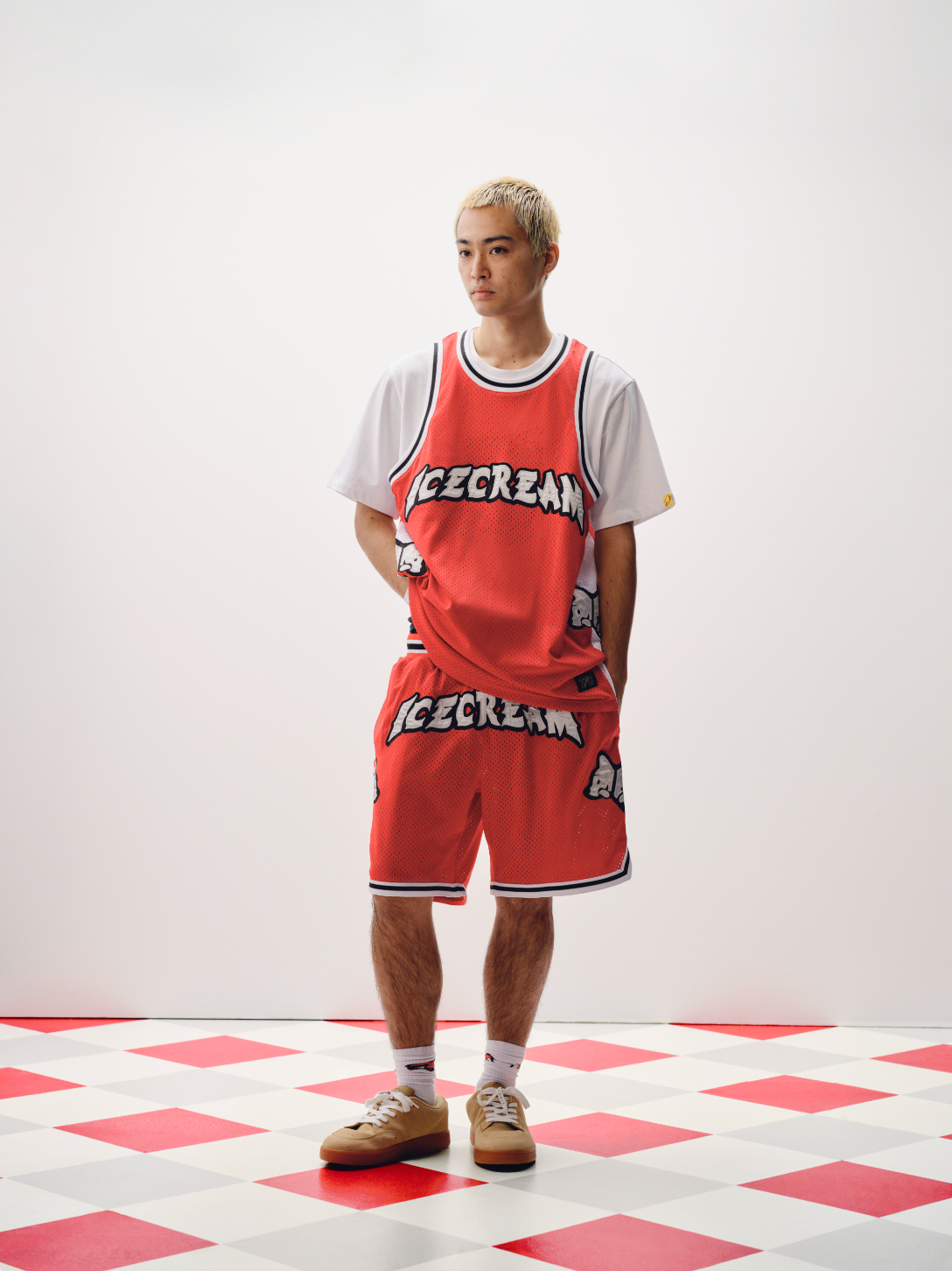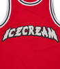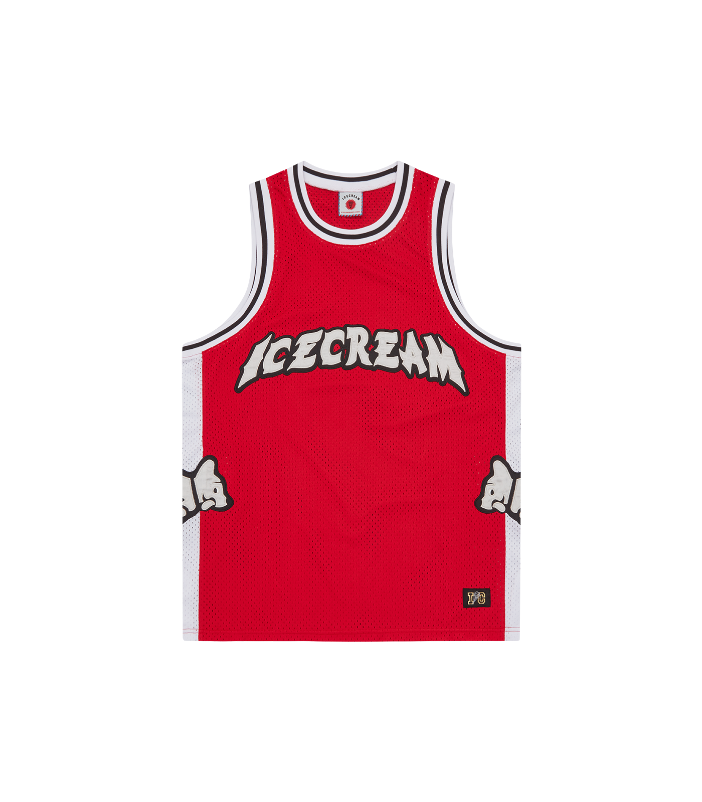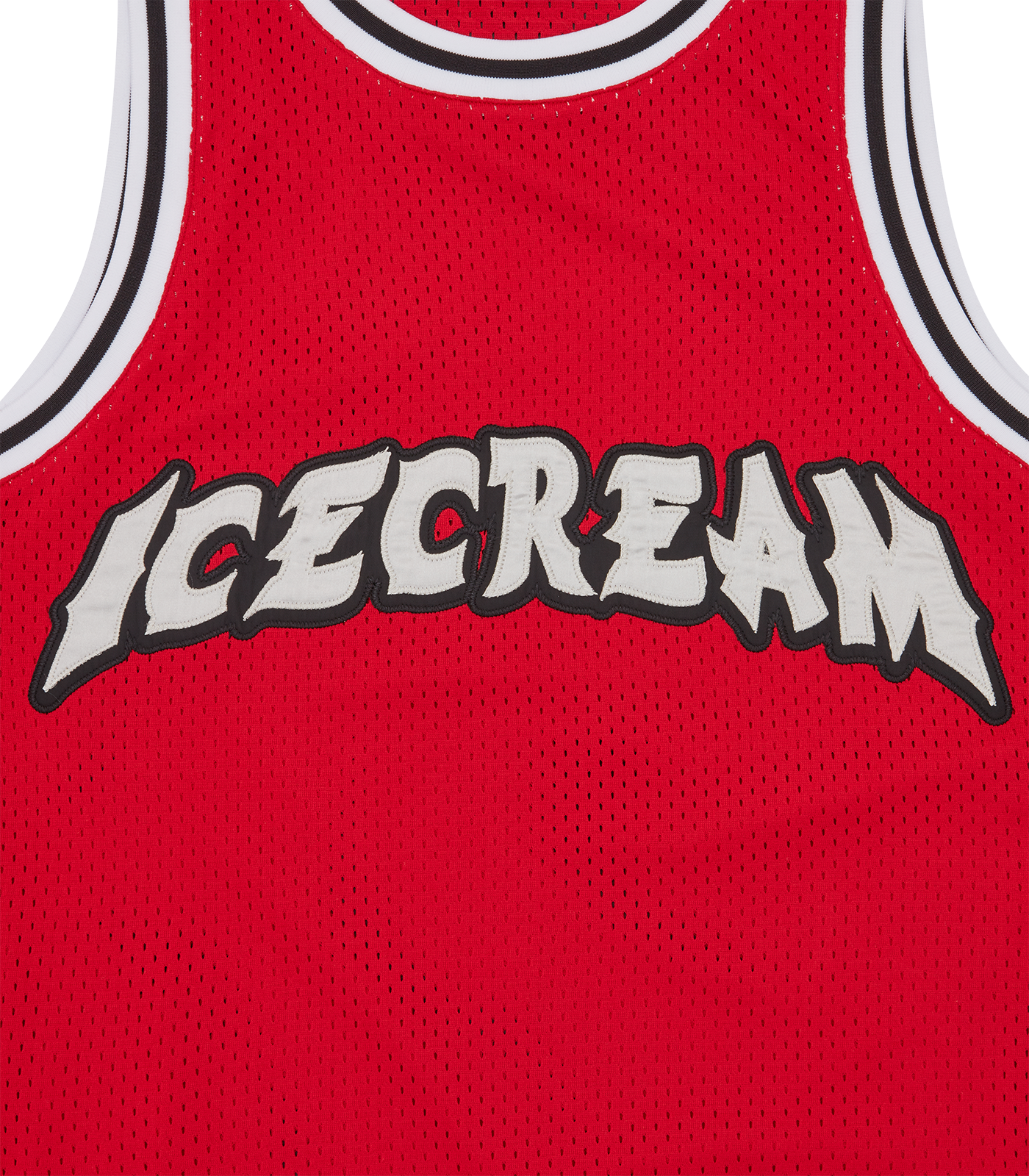 ICECREAM Pre-Spring '25 - This Running Puppy Applique Basketball Vest is designed with the ICECREAM logo all over the front and it presents the Running Puppy appliqué on both the sides.