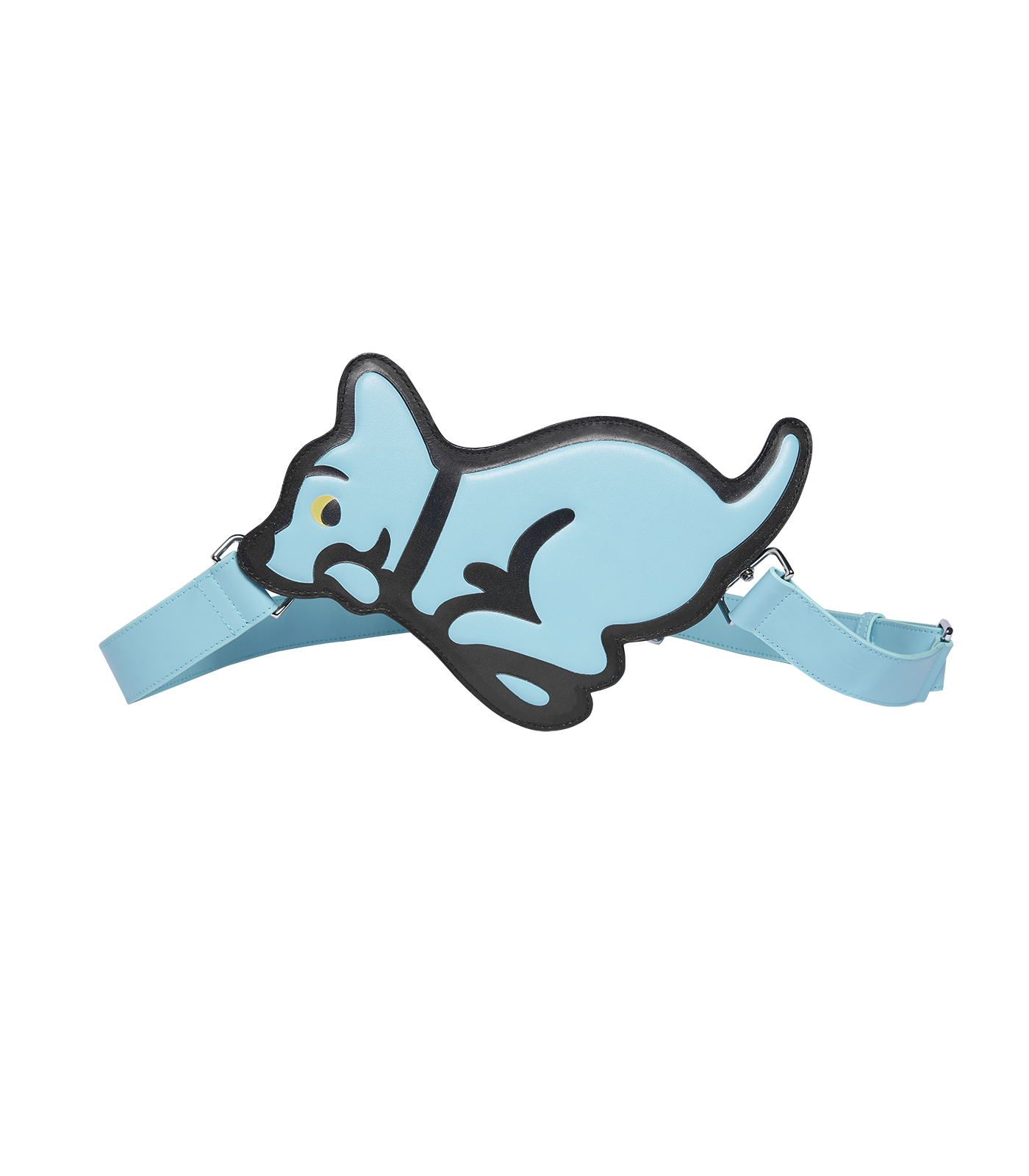 ICECREAM Pre-Fall '25 - The Running Puppy Leather Shoulder Bag comes in blue and with an adjustable shoulder strap.