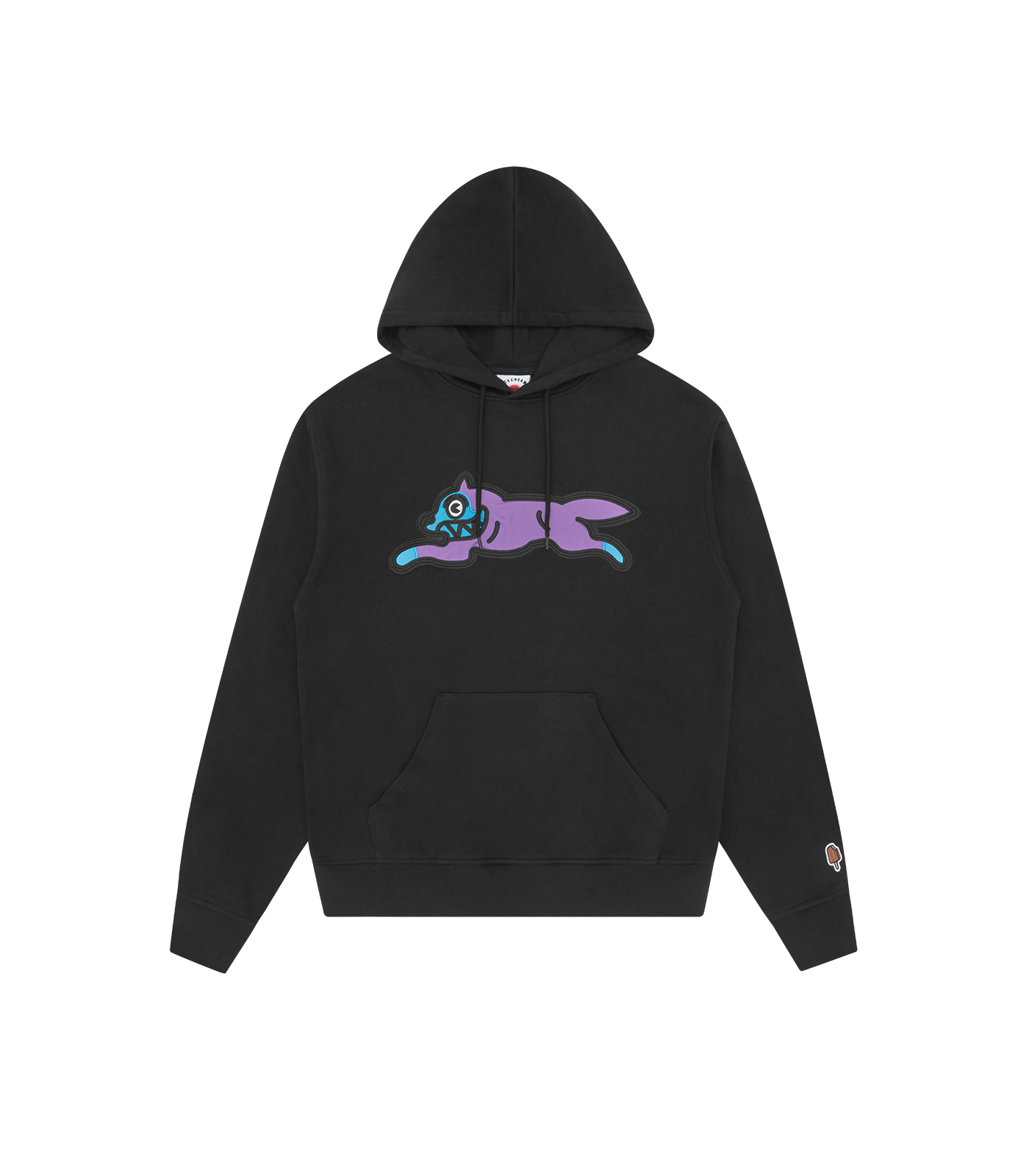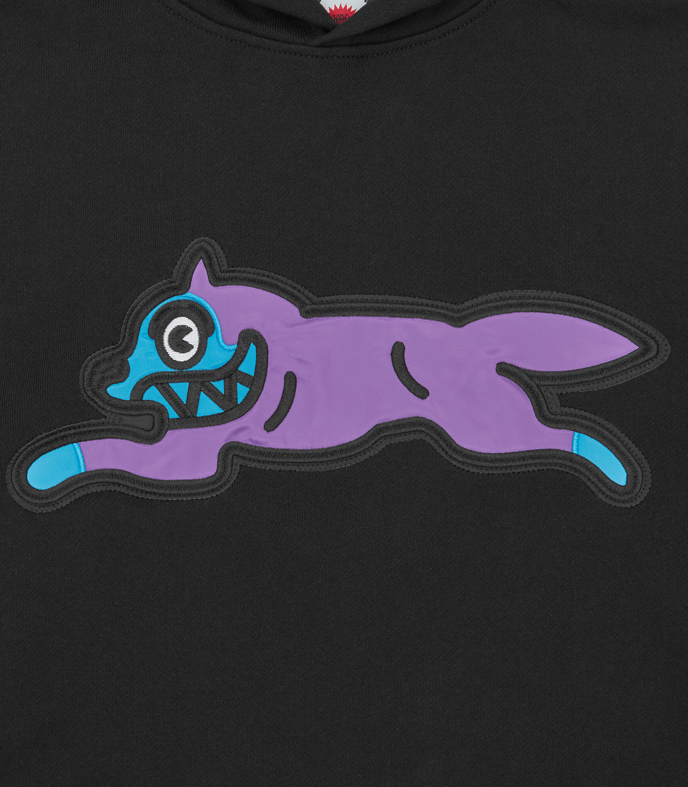 ICECREAM Pre-Fall '25 - Satin Running Dog Popover Hood, designed with a satin running dog appliqué, kangaroo pouch and drawstring hood.