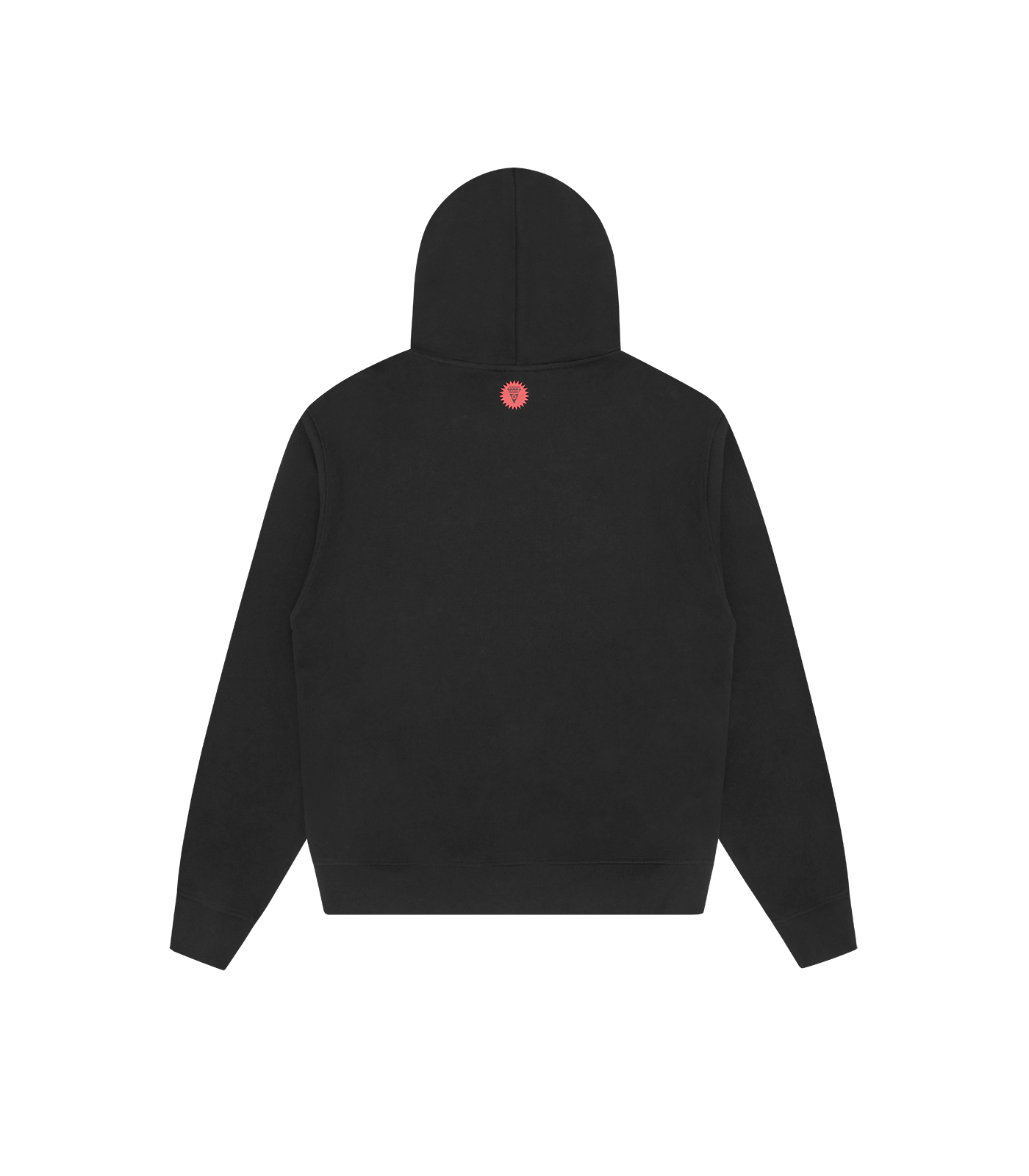 SATIN RUNNING DOG POPOVER HOOD - BLACK